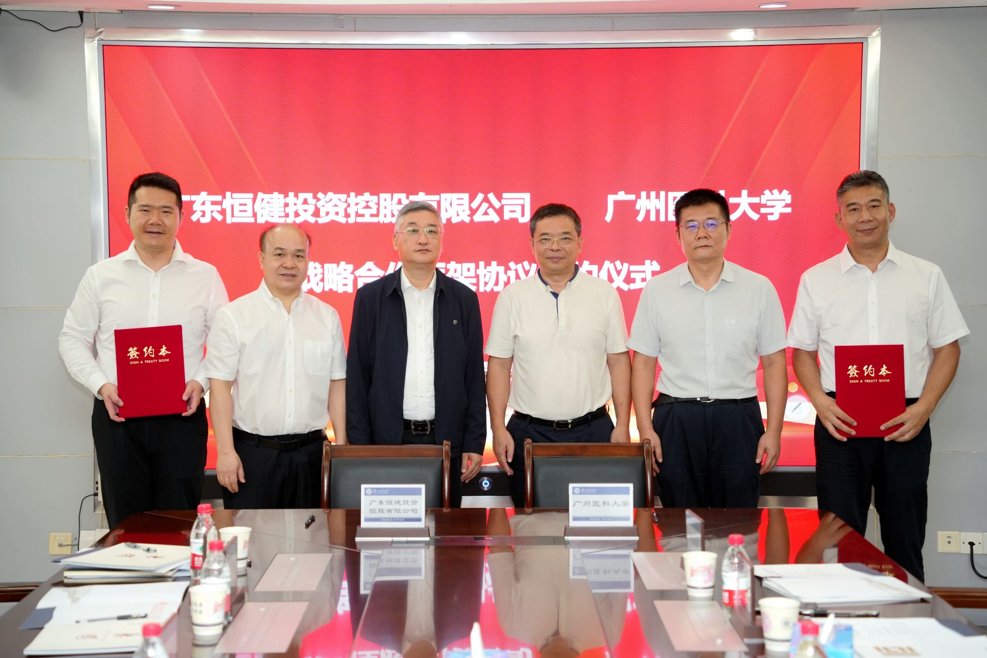 本网讯 7月2日下午,我校与广东恒健投资控股有限公司(下称“恒健控股公司”)战略合作框架协议签约仪式在番禺校区举行。学校党委书记唐小平,校长赵醒村,副校长周麟、付晓东,附属第二医院院长肖国宏,恒健控股公司董事长唐军、纪委书记李彪、副总经理叶仲豪,以及双方相关职能部门负责人出席签约仪式。唐小平书记主持签约仪式。