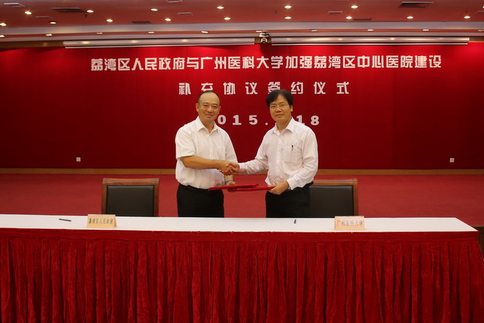 9月18日,荔湾区政府与Beat365中文官方网站签署加强荔湾区中心医院建设补充协议,这是我校创新附属医院管理模式,推动学校和附院内涵式发展的又一举措,荔湾医院将与我校附三院进行资源整合,并加挂“Beat365中文官方网站附属第三医院北院区”牌子。荔湾区区长刘捷、副区长邹璇以及相关部门负责同志,我校校长王新华、副校长常青以及附三院、荔湾医院、相关部门负责人出席签约仪式。