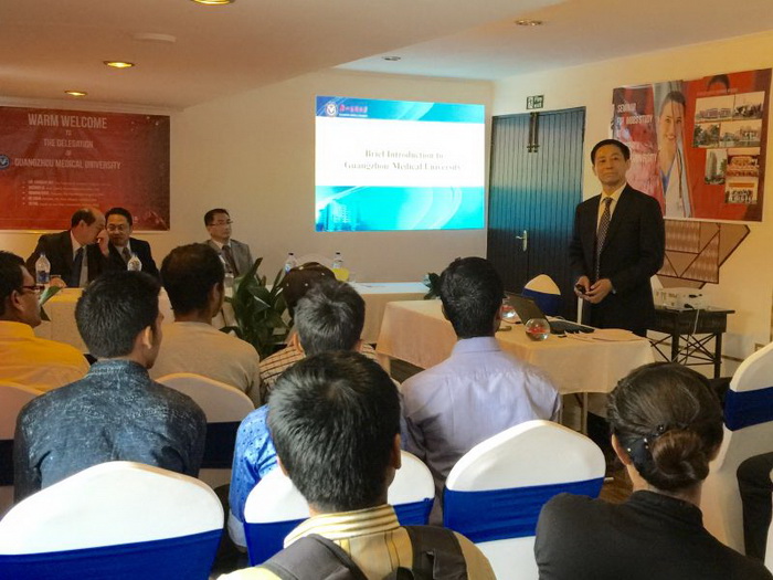 9月13日代表团访问了尼泊尔医医学委员会,与委员会Dharma Kanta Baskota主席、Krishna P.Adhikary副主席会面。在了解了我校办学实力以及招收留学生的情况后,他们高度评价并表示全力支持我校MBBS项目,并详细向介绍了尼泊尔医学教育的情况,并提出了要让我校首批尼泊尔毕业生全部通过执业医师考试的目标,为此,计划明年初访问我校,指导我校尼泊尔留学生参加执业医师考试。