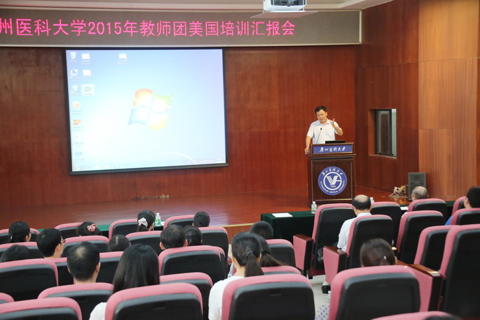 9月24日,我校举行2015年教师团美国培训汇报会。会议由国际教育学院吕嘉春院长主持,王新华校长、魏东海副校长出席了会议,相关部处、学院负责人和今年出国培训的20名教师以及青年教师代表参加了汇报会。