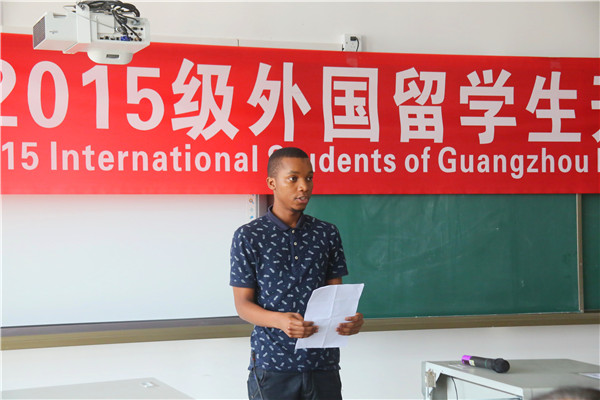 来自赞比亚的nazanwa代表了留学生新生发言,他和大家分享了被广医录取后的激动心情以及他眼里的广医,他表示入读广医是自己在正确的时间所做的正确的选择。