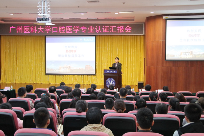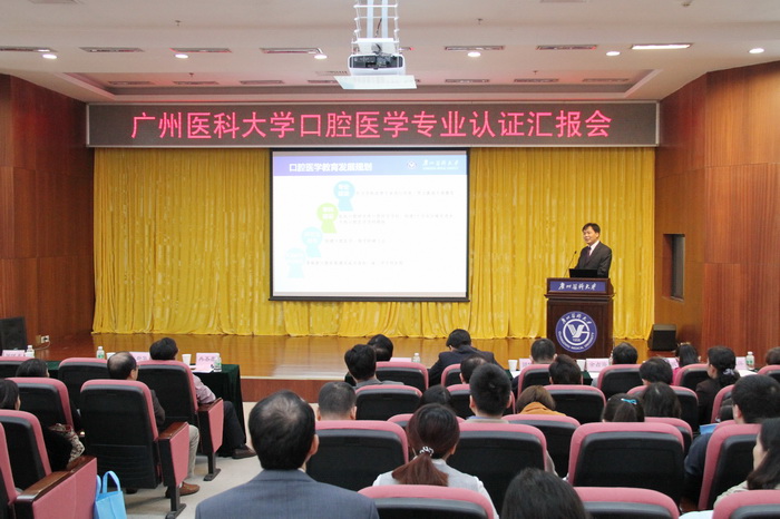 12月24日上午,口腔医学本科专业认证汇报会在番禺校区图书馆报告厅举行。专家组全体成员、学校领导、口腔医学院及各院系部处相关负责人、口腔医学院各教研室及职能部门负责人、教师代表及学生代表共100多人参加了汇报会。