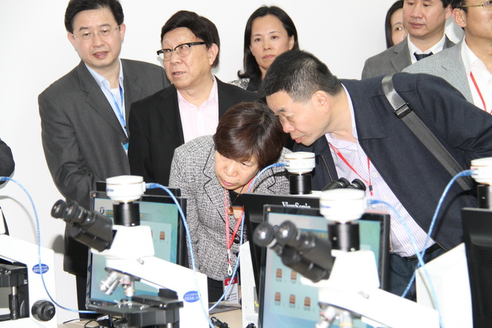 汇报会结束后,专家组成员分别参观了我校番禺校区图书馆、学生活动中心、体育馆,考察了学生宿舍、学生食堂。当天下午,专家组集体现场观摩王朝俭老师主讲的“口腔颌面医学影像诊断学”课程。随后,走访了承担口腔医学专业医学基础课程的基础学院形态学实验教学中心和生物学实验教学中心以及口腔解剖教研室,听取基础学院汇报实验室的总体情况后,专家组详细了解了口腔医学专业学生对该实验室的利用情况。