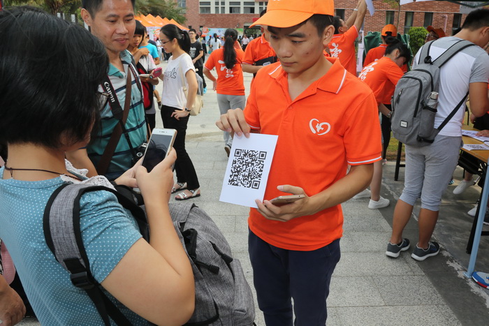 今年的新生入学报到,大量黑白两色相杂的正方块——二维码,出现在宿舍区的显眼位置以及志愿者手上。据介绍,“微报到”充分利用微信等移动互联技术,新生到校后,只要用手机扫描该二维码即可“一键”快速完成入学报到手续;需要申请绿色通道的学生亦可通过手机微信端进行预申请,并完成入学报到手续。