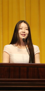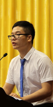 教师代表蒋丽丽、钟祎,新生代表许智恒、吴晓雨发言