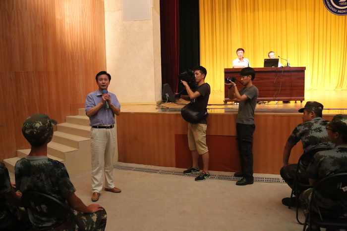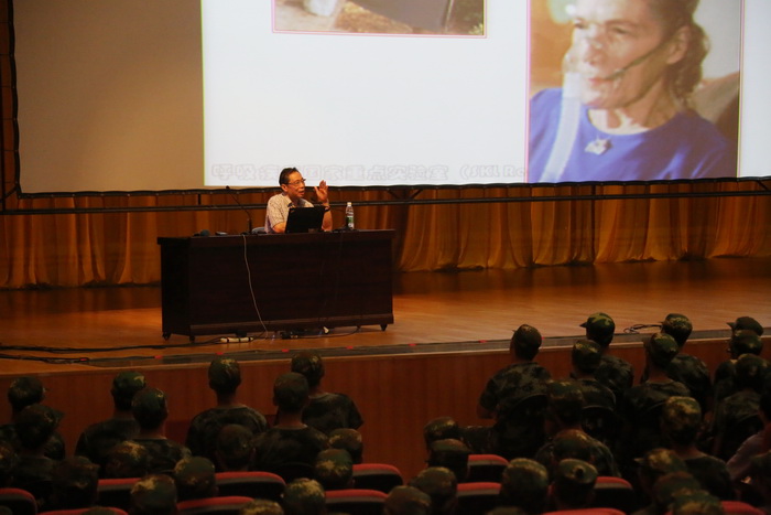 钟院士特别强调要多进行体育锻炼,希望同学们都能练就健康的体魄。他以自己年轻和近期游泳的照片作对比,近80岁却仍保持的健美身材,引起同学们的阵阵惊叹。他说,健康其实一直掌握在自己手中。人生只有一次,必须健康积极地生活。