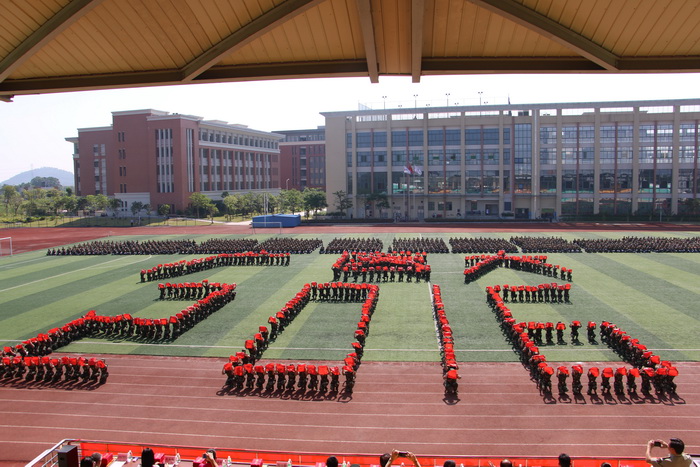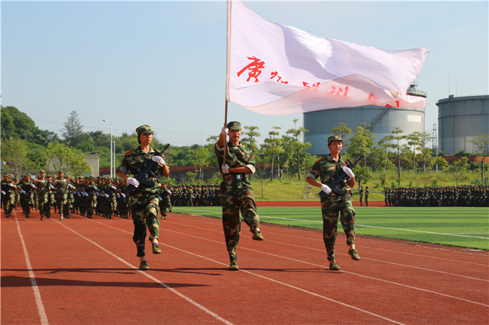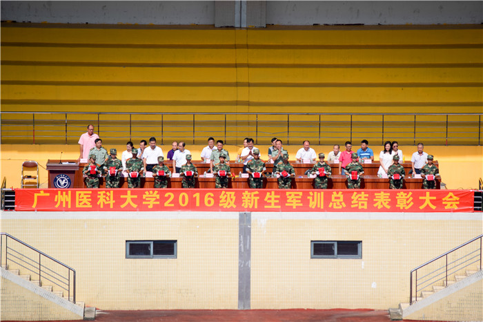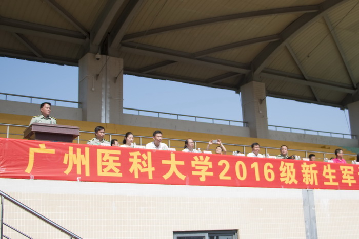 2016级新生军训检阅暨总结大会于9月14日上午在番禺校区田径场举行。校长王新华,学校军训领导工作小组组长、副校长黄健清,军训承训部队上校区洪江以及学校相关职能部门、学院负责人出席。