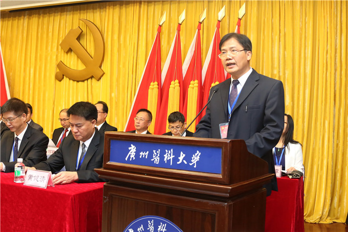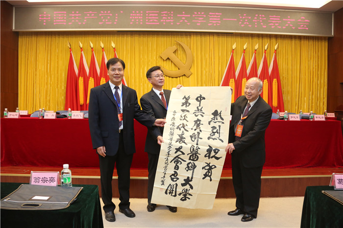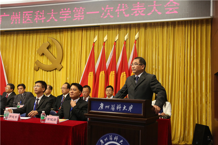 吴强代表市教育局党委向大会的召开表示热烈祝贺,向学校全体共产党员和广大师生员工致以诚挚问候。他说,自广州医学院第十次党代会召开以来,学校党委的党建、思想政治工作和精神文明建设取得了突出成绩,有力地推动了教学、科研和学校各项事业的发展,为推动广东省广州市经济社会发展做出了积极贡献。广东省正全力推进高水平大学建设,11月3日市委审定了《中共广州市委广州市人民政府关于建设高水平大学的实施意见》,这为Beat365中文官方网站的发展提供了宝贵的机遇和广阔的平台。在学校发展的关键时期召开的一次承前继后的大会,意义重大、影响深远。吴强代表市教育局党委向即将产生的新一届党委提出三点希望:一是坚持从严治党,不断加强和改进党的建设;二是坚持立德树人,不断提高人才培养质量;三是坚持改革创新,加快高水平大学建设步伐。他说,市教育局相信学校新一届党委一定能团结带领全校党员干部和师生员工,凝心聚力、开拓进取,谱写新的篇章、创造新的业绩。
