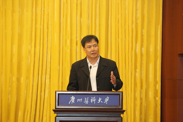 通报会后,由副校长刘金保主持召开“高水平大学建设推进会”。王新华校长宣读了《中共广州市委、广州市人民政府关于建设高水平大学的实施意见》。意见提出两年内投入首期建设经费9.91亿元整体推进我校建设高水平大学。