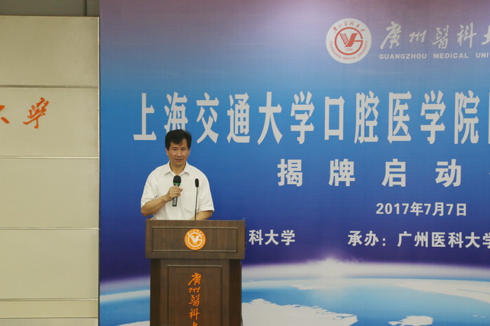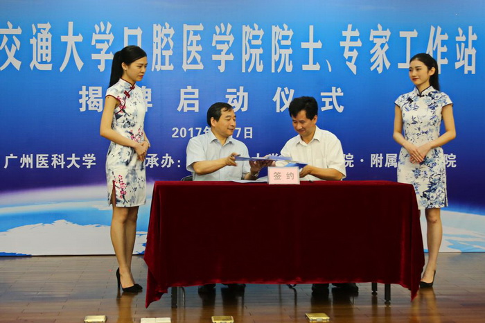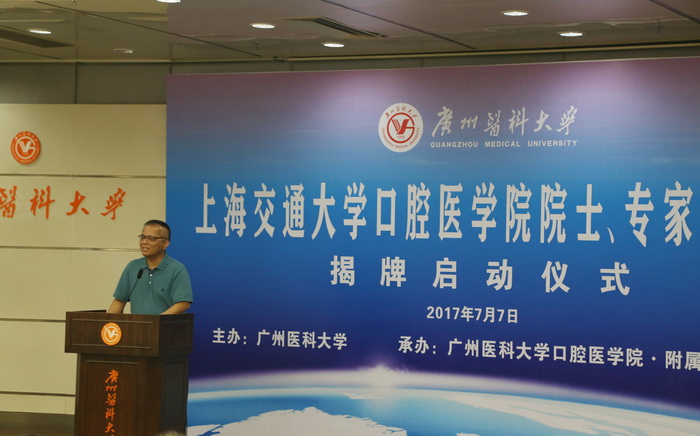 7月7日,上海交通大学口腔医学院院士、专家工作站揭牌启动仪式在Beat365中文官方网站越秀校区举行。广东省科技厅周木堂副巡视员、产学研处陈建敏副处长,上海交通大学口腔医学院张志愿院士、沈国芳院长、郑家伟副院长、蒋欣泉副院长、杨驰主任,Beat365中文官方网站王新华校长、刘金保副校长、黄宇翔处长,Beat365中文官方网站附属口腔医院葛林虎院长、黄洪章名誉院长、张曼莉副书记以及口腔医院职工代表共200多人参加了揭牌启动仪式。