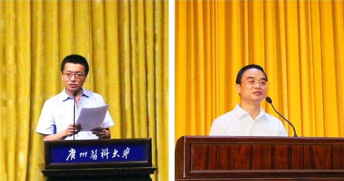 副校长罗健东、刘金保分别主持本科生新生、研究生新生开学典礼