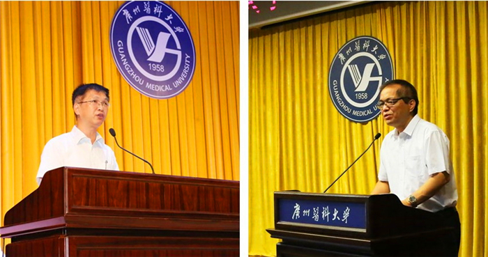 呼吸疾病国家重点实验室副主任赵金存教授、第二临床学院刘翔老师作为教师代表分别在研究生开学典礼、本科生开学典礼上发言。赵金存教授鼓励同学们勇于创新,发挥主观动能性,做科研诚信的人。刘翔老师鼓励同学们去尝试,尝试攀登人生新的高度,尝试从不同的角度看世界,尝试丰富而充实的人生。两位老师向同学们分享了经历与感悟,表达了对大家的期望与要求。