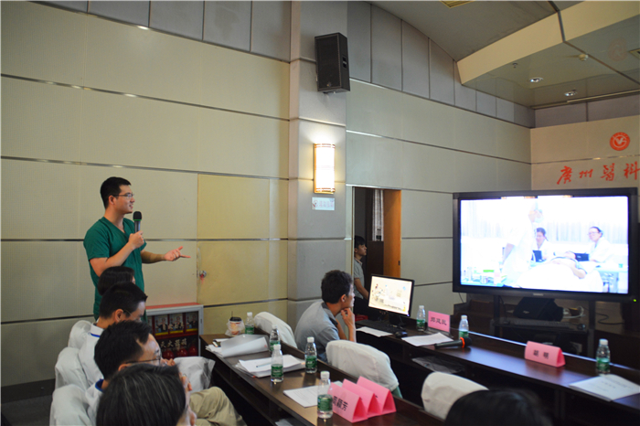 比赛进行得如火如荼时,学术报告厅的实时转播使现场观众了解最新赛况。同时,还配有讲解员评价参赛选手的操作手法。在场外观看比赛的同学也分享了他们的看法,2013级第二临床学院梁汉标说:“你能从中学到很多实用的操作与人文关怀的方法。师弟师妹们如果对比赛感兴趣可以早点做好准备,打下坚实一点的基础,英语也要学好,这很有用。”2014级南山学院刘智超说:“我们现在刚开始接触临床技能这个培训,也经历过一轮多站式的考核。希望通过这次比赛,为以后打好基础。”