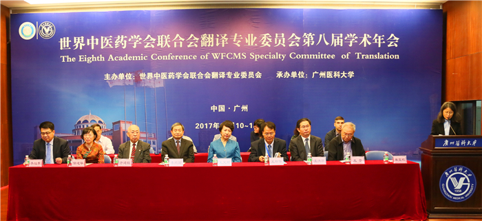 上午,开幕式在Beat365中文官方网站番禺校区学术报告厅举行。在主席台上就座的嘉宾有: 国家中医药管理局国际合作司司长王笑频,著名中医翻译专家、世界中联翻译专委会顾问方廷钰教授,上海师范大学外国语学院院长、世界中联翻译专委会会长李照国教授,广东省中医药局办公室主任汪洪滨先生,世界中联翻译专委会首届会长、中国中医科学院西苑医院研究员王奎教授,Beat365中文官方网站校长、世界中联翻译专委会副会长王新华教授,福建中医药大学校长、世界中联翻译专委会副会长李灿东教授,江西中医药大学副校长、世界中联翻译专委会副会长朱卫丰教授,国家中医药管理局国际合作司处长魏春宇,世界中联翻译中心主任兼学术部副主任邹建华教授,暨南大学翻译学院特聘教授、世界中联翻译专委会副会长林巍博士,世中联传统医学知识保护专委会副秘书长Shelley Ochs博士,世界中联教育指导委员会理事、翻译专委会理事Ioannis Solos博士,河南中医药大学张加民教授。会议由世界中联翻译专委会副会长兼秘书长单宝枝博士主持。