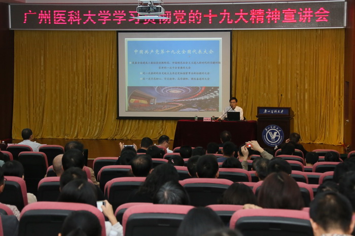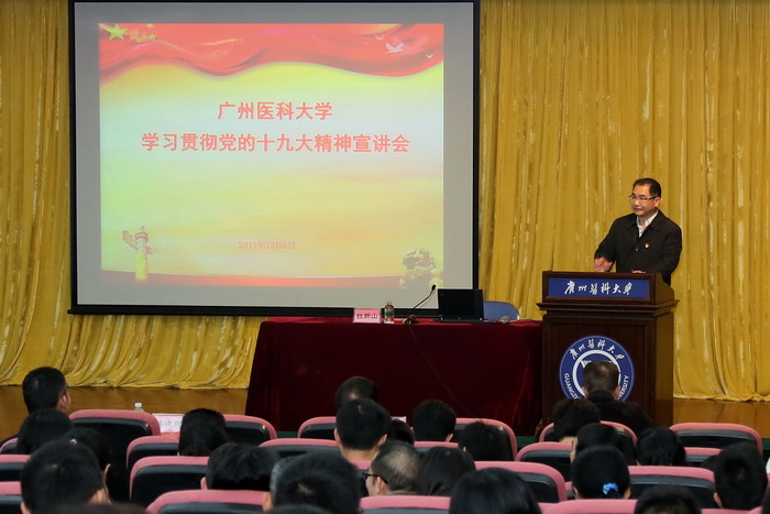 12月6日下午,我校举行学习贯彻党的十九大精神宣讲会。学校党委副书记陈晓辉主持宣讲会,广东省委宣传部讲师团团长、省委十九大宣讲团成员杜新山作宣讲报告。学校领导,校本部全体党员、副科及以上干部、副高职称以上专业技术人员共近400人参加了本次宣讲会。