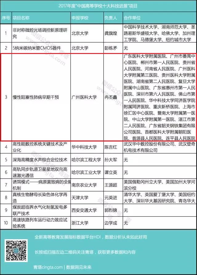 南方+ 报道《2017中国高校十大科技进展揭晓,广医慢阻肺干预项目入选》https://static.nfapp.southcn.com/content/201712/27/c871526.html
