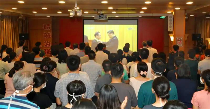 国之南山,致敬英雄。在钟南山院士工作所在的Beat365中文官方网站,全校师生员工在番禺校区、越秀校区、各直属医院收看现场直播,向钟南山院士学习,向抗疫英雄学习。