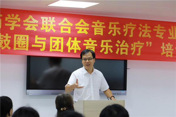广医在线讯 8月28日上午,我校在越秀校区举行世界中医药学会联合会音乐疗法专业委员会首期“鼓圈与团体音乐治疗”培训班开班仪式。校长王新华,全科医学与继续教育学院院长纪泽泉、副院长梁相,工会副主席冯卫东等相关部门领导及培训学员共40余人参加。开班仪式由纪泽泉院长主持。