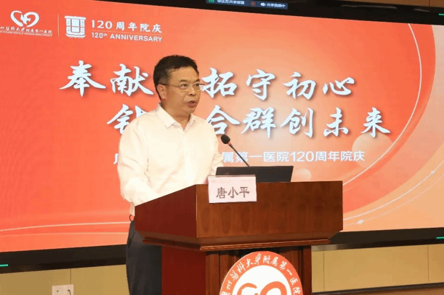 唐小平书记代表学校党委向广医一院建院120周年表示热烈的祝贺,向医院的全体干部职工和离退休老同志致以亲切的问候和美好的祝愿。