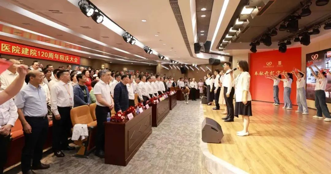 大会最后,全体与会人员同唱一首歌,用传承广医一院人精神的《仁爱精诚》献礼120周年华诞。