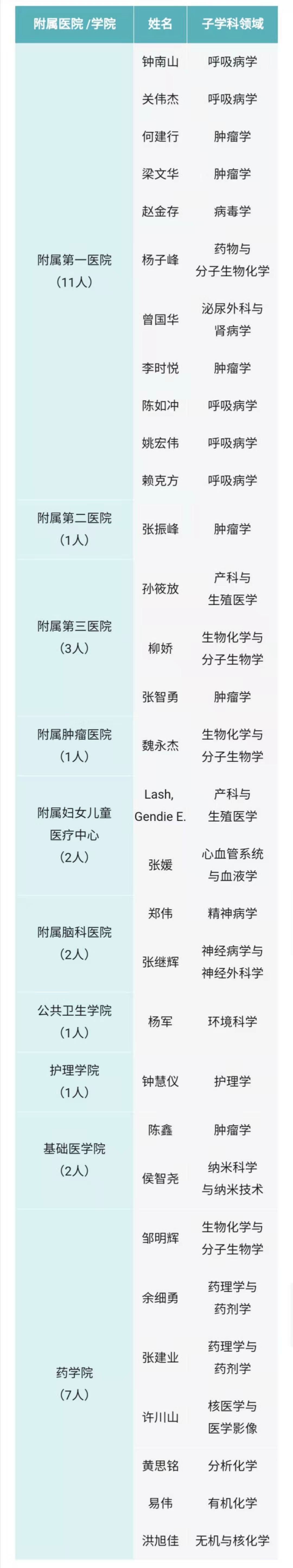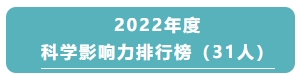 我校共有31位学者入围“年度科学影响力榜单”(表1),其中,有9位学者同时入围“终身科学影响力榜单”(表2)。