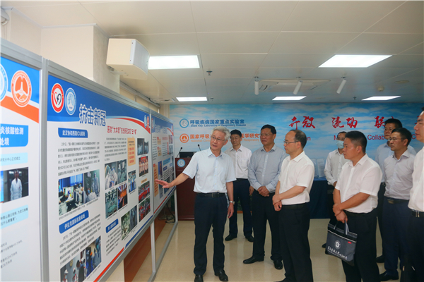 在呼吸疾病国家重点实验室,冉丕鑫书记向遵义医科大学一行介绍了广医抗击新冠肺炎疫情的工作。