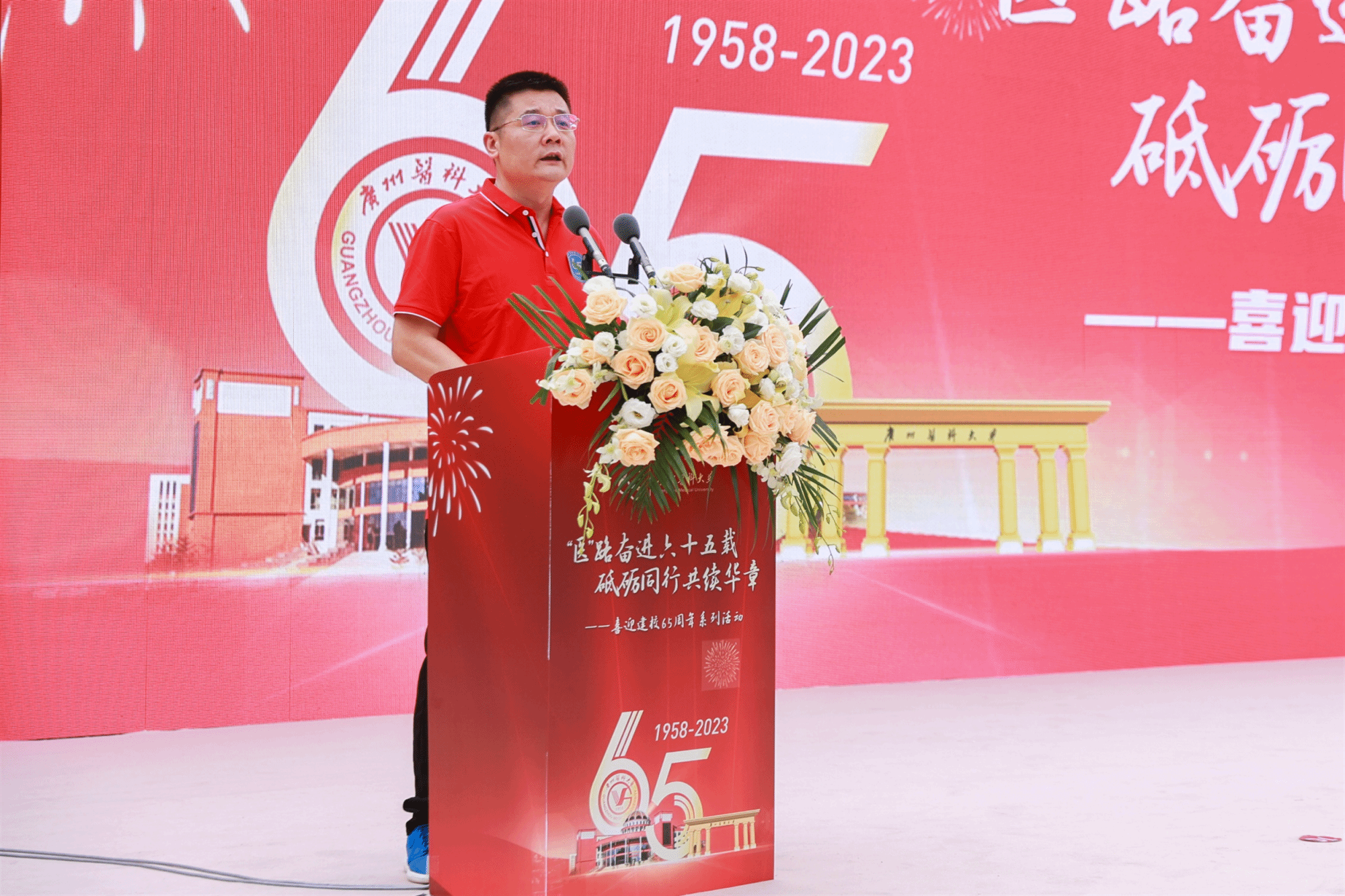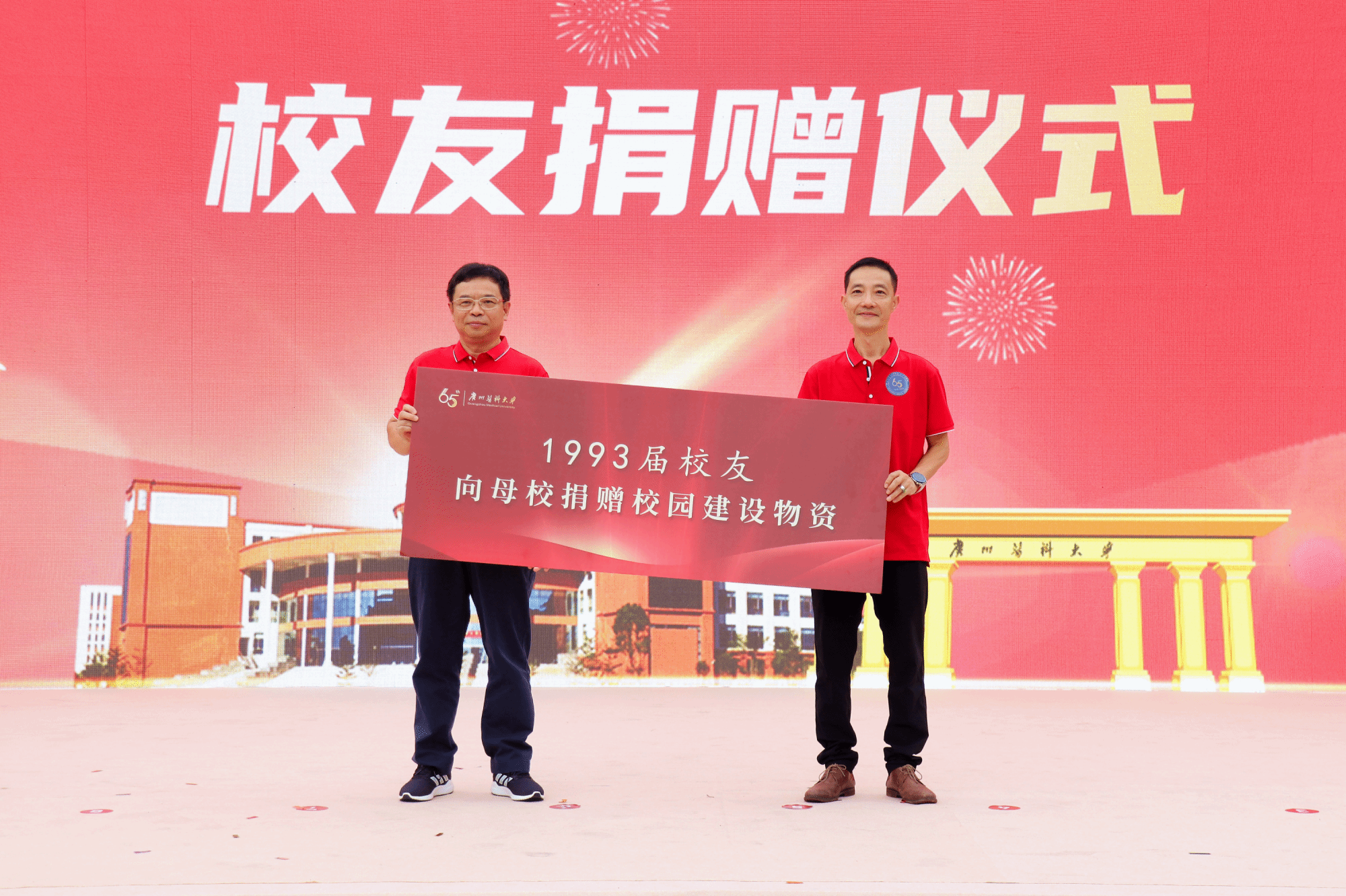 初心如炬,奋进如歌。与会人员共同观看65周年校庆祝福视频。在视频中,在校学生和世界各地校友为广医送上了真挚的祝福。随后,65周年校庆系列活动正式拉开帷幕。