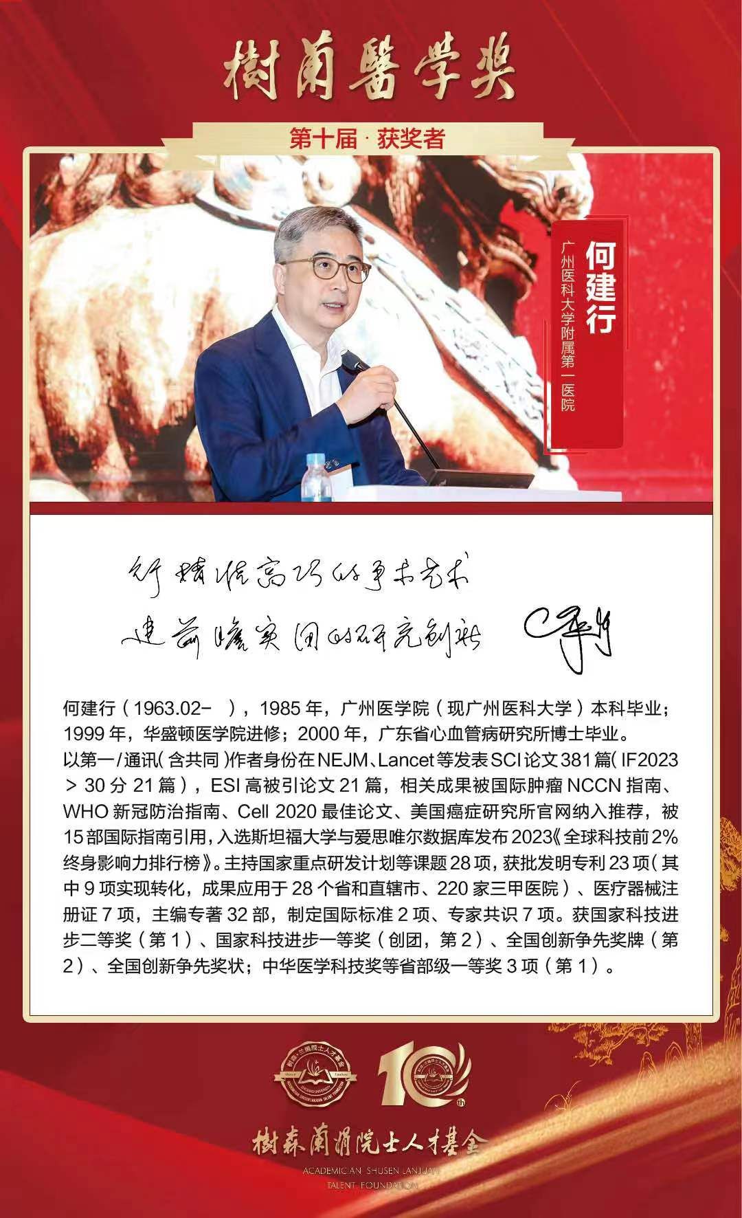 何建行教授获颁“树兰医学奖”