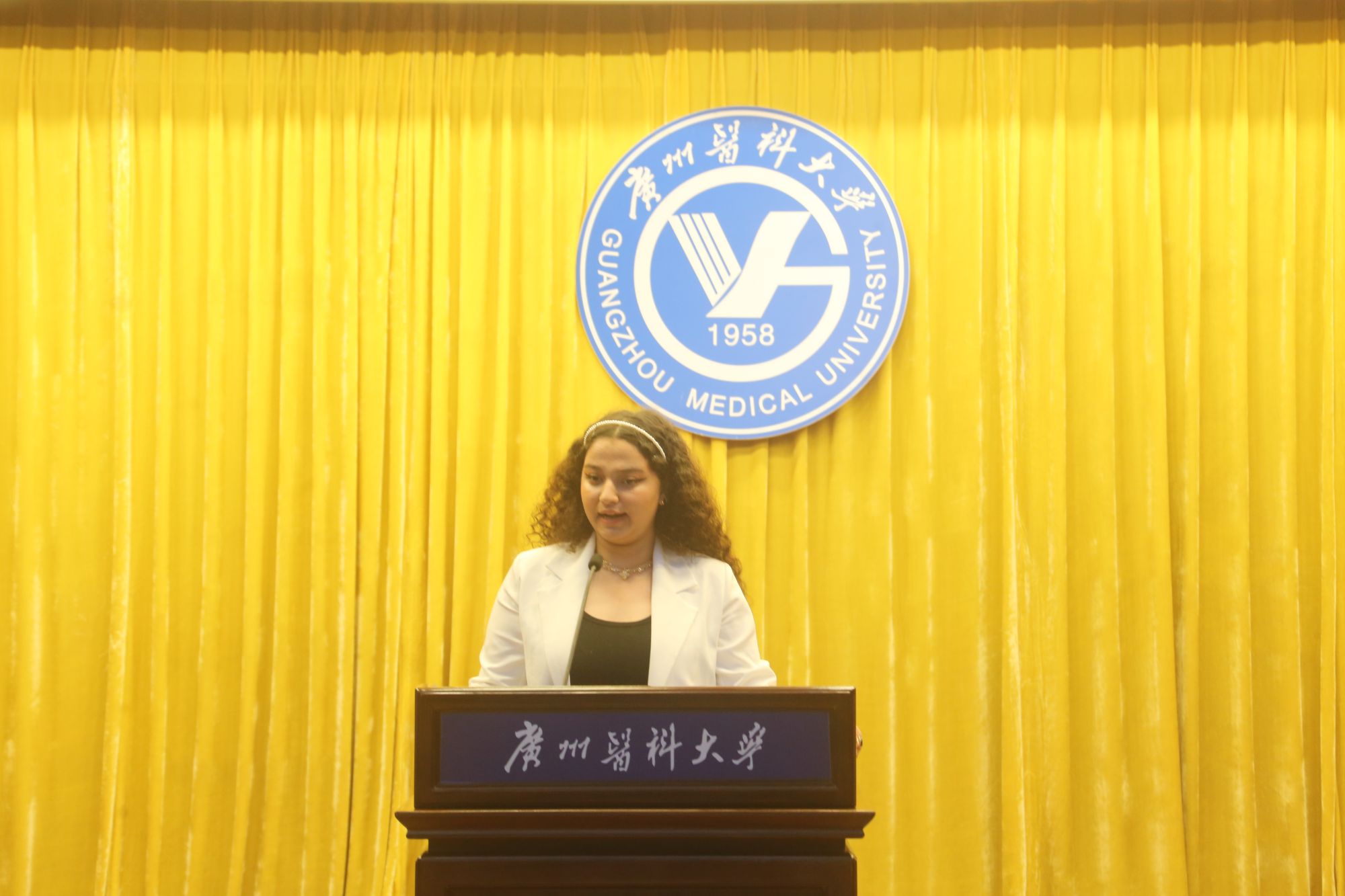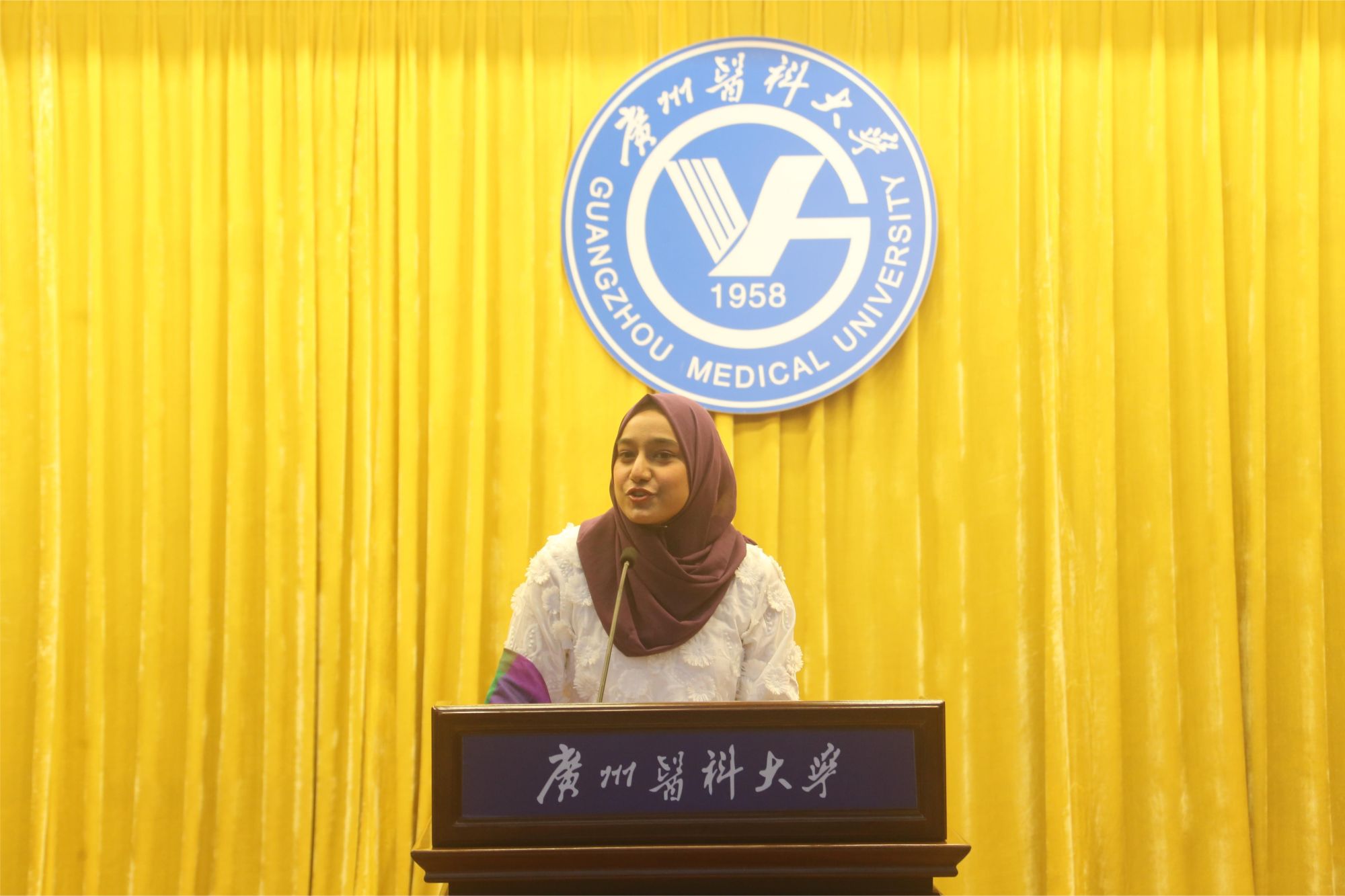 来自伊朗的RAHMATI SADR SARA作为新生代表发言,她讲述了自己选择来我校就读临床医学专业的缘由和对中国文化的浓厚兴趣,并表示将珍惜在广医的学习时光,为实现自己的医学梦想而努力。来自巴基斯坦的AMBREEN作为在校生代表发言,她表示,广医是留学生们的第二个家,希望新同学们尽快适应在华在校学习生活环境,努力学好汉语,明确学习目标,在广医开启人生新旅程。