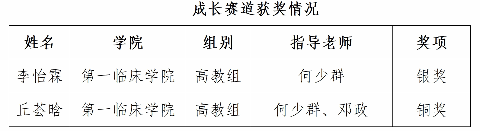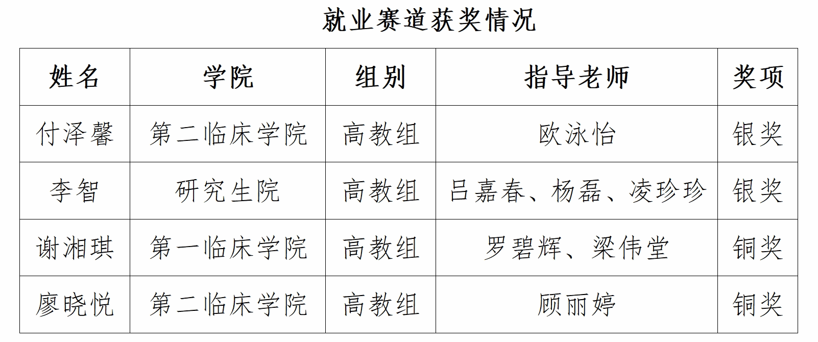 另外,第一临床学院丘荟晗荣获成长赛道铜奖,第一临床学院谢湘琪、第二临床学院廖晓悦荣获就业赛道铜奖。