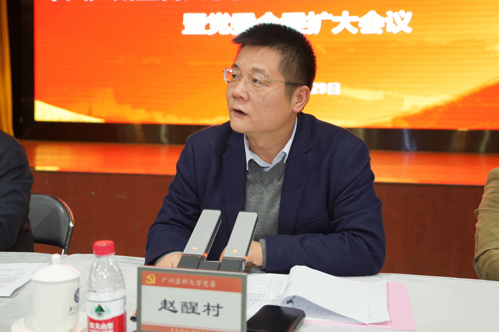 学校党委副书记、校长赵醒村以“提质增效、争创一流,奋力开创学校高质量发展新局面”为题作讲话。他表示,当前学校正处于爬坡过坎、转型升级、进位赶超的关键时期,我们要深入学习贯彻习近平总书记重要讲话精神和省市高质量发展大会精神,深刻认识广医在形成新质生产力中的使命任务,以“双一流”建设为主线,以提质增效作为重要抓手,抢抓未来三到五年学校发展的关键窗口期,推动大力度改革、全方位转变,以“二次创业”精气神再造一个“新广医”,努力推动学校各项事业实现更高质量、更有效率、更可持续的发展。