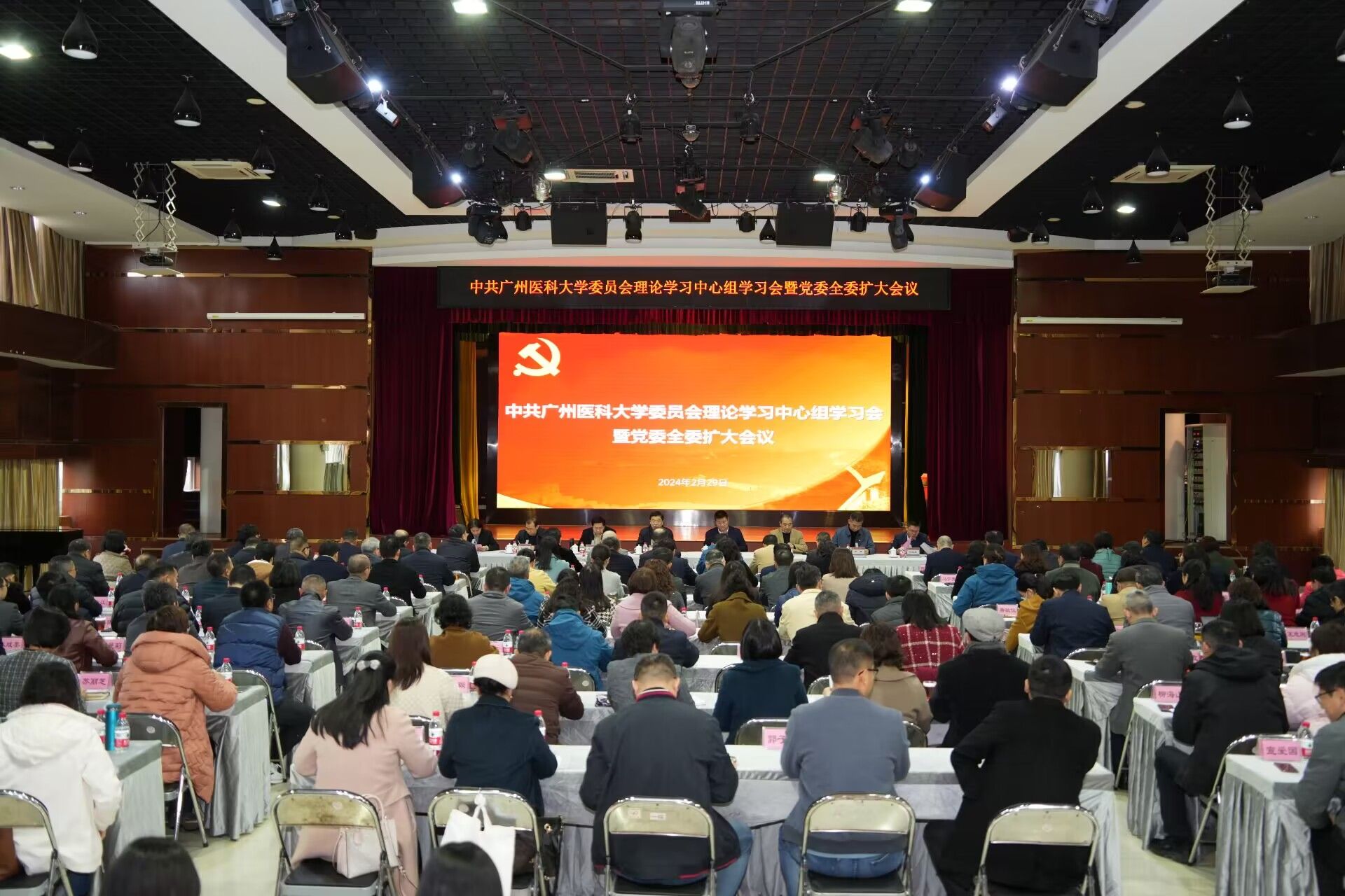 党委书记唐小平以“围绕推动高质量发展狠抓落实,以奋斗的你我建设奋进的新广医”为题作中心发言并讲话。他表示,习近平总书记深刻总结新时代以来党中央推动高质量发展取得的丰硕成果,客观分析制约高质量发展的问题因素,全面阐明以加快发展新质生产力推动高质量发展的现实意义、方法路径和重要举措,为我校加快推动高质量发展指明了前进方向。我们要深入学习贯彻习近平总书记关于推动高质量发展的重要论述精神,牢记高质量发展是新时代的硬道理,深入贯彻落实党中央决策部署和省委、市委部署要求,以高质量落实推动学校高质量发展、服务社会高质量发展。