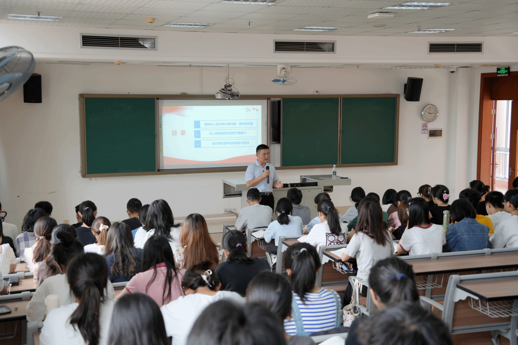 3月29日,在主题为“坚持以人民为中心 为人民健康事业发展扛起青春担当”的思政课上,校长赵醒村教授为同学们深入阐述坚持以人民为中心的发展思想,详细介绍党为人民的美好生活而不懈奋斗的实践路径,并号召当代青年医学生肩负使命与担当,为健康中国建设贡献智慧与力量。