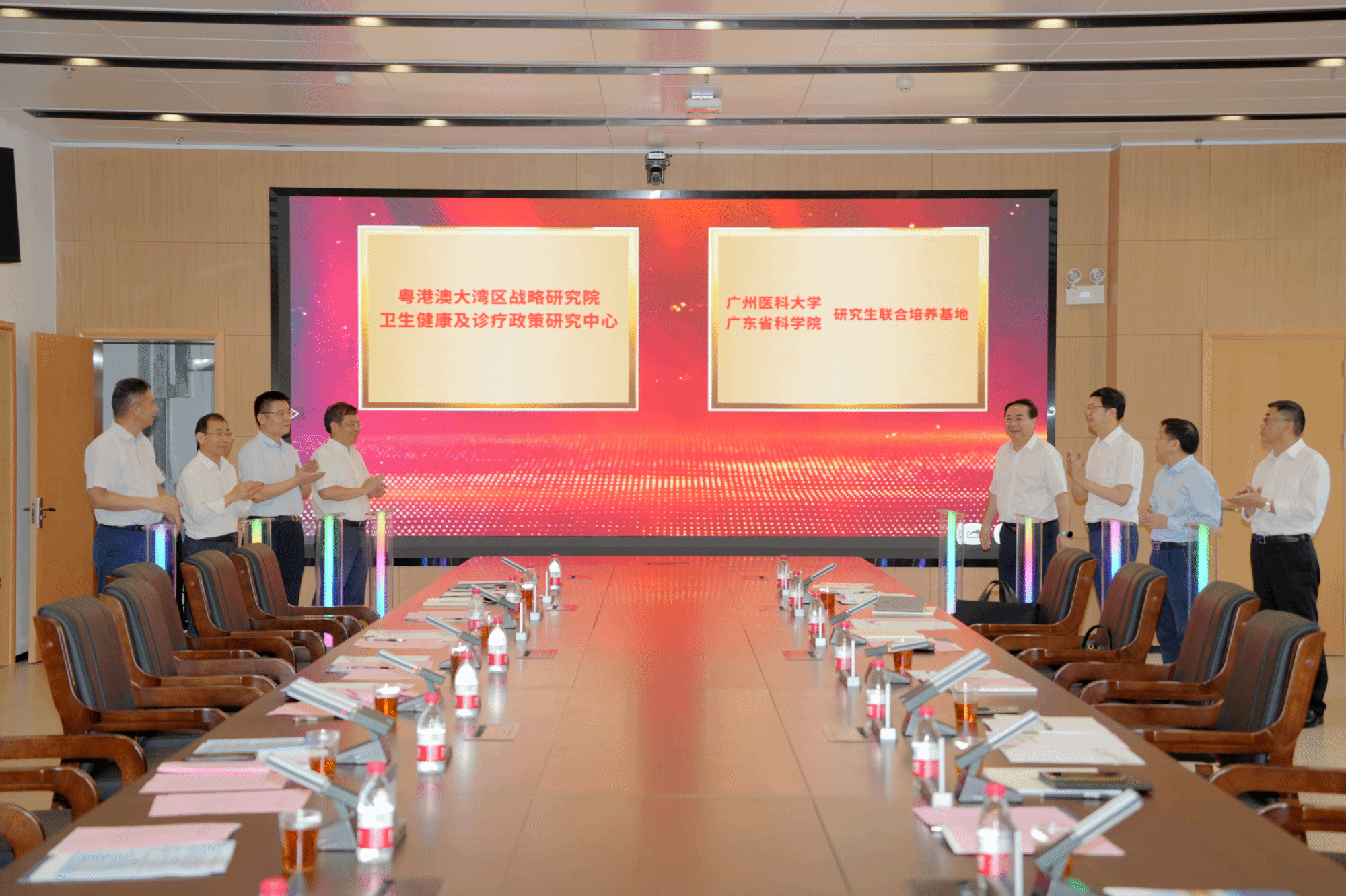 在双方领导见证下,赵醒村校长、陈为民院长分别代表双方签订战略合作框架协议。随后,双方领导为“粤港澳大湾区战略研究院卫生健康及诊疗政策研究中心”“Beat365中文官方网站-广东省科学院研究生联合培养基地”揭牌。