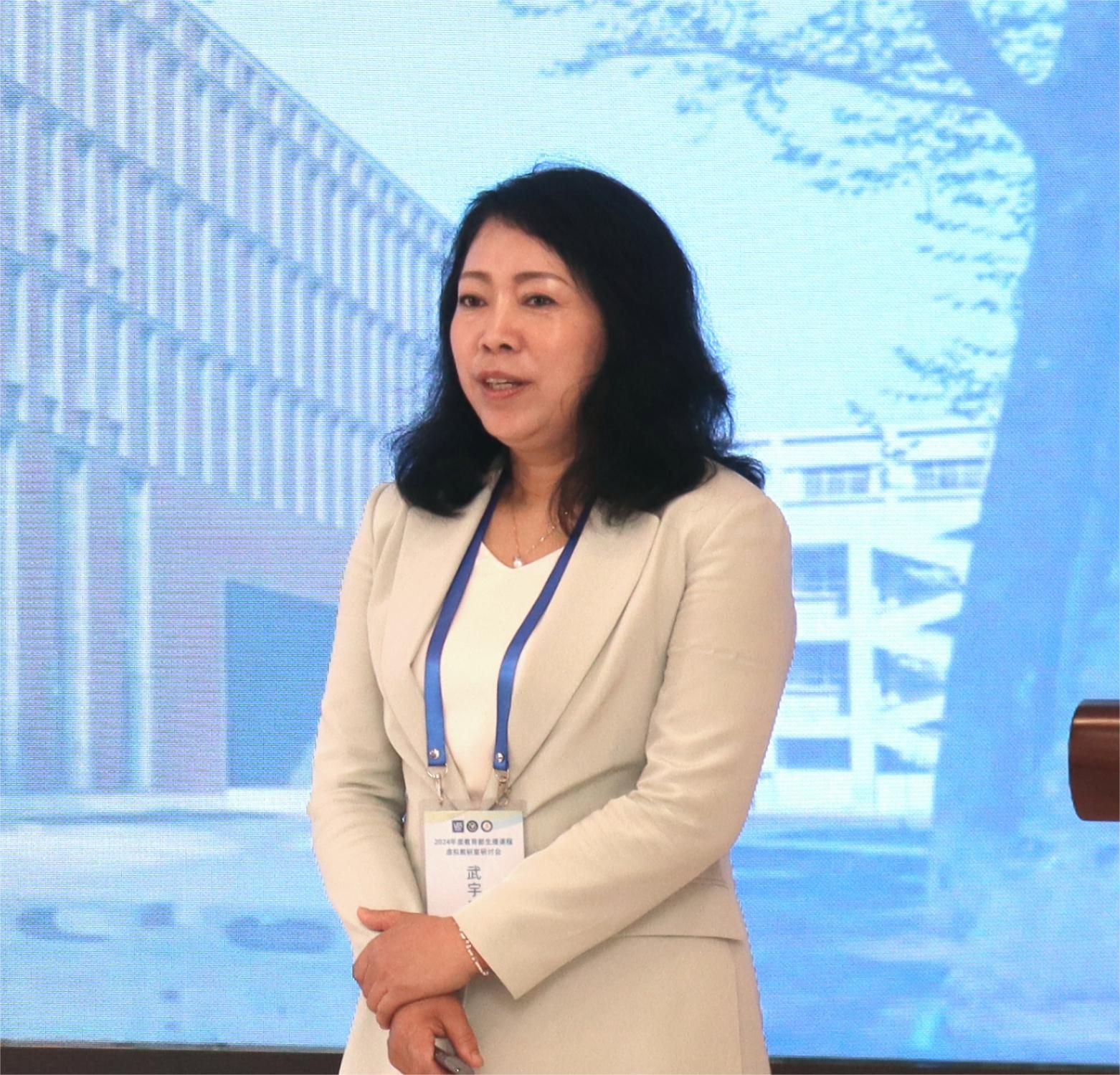 李建华副校长在开幕式致辞中介绍了我校的发展历程和近年的阶段性办学成果。她表示,作为新型基层教学组织,课程虚拟教研室在推动学科建设、教学创新及课程改革中发挥了重要作用,来自不同区域、不同学校、不同教研室的专家共同研究讨论,打造教育教学发展共同体,充分运用信息技术探索教研新思路、新方法、新范式,将进一步推进教育部虚拟教研室建设。