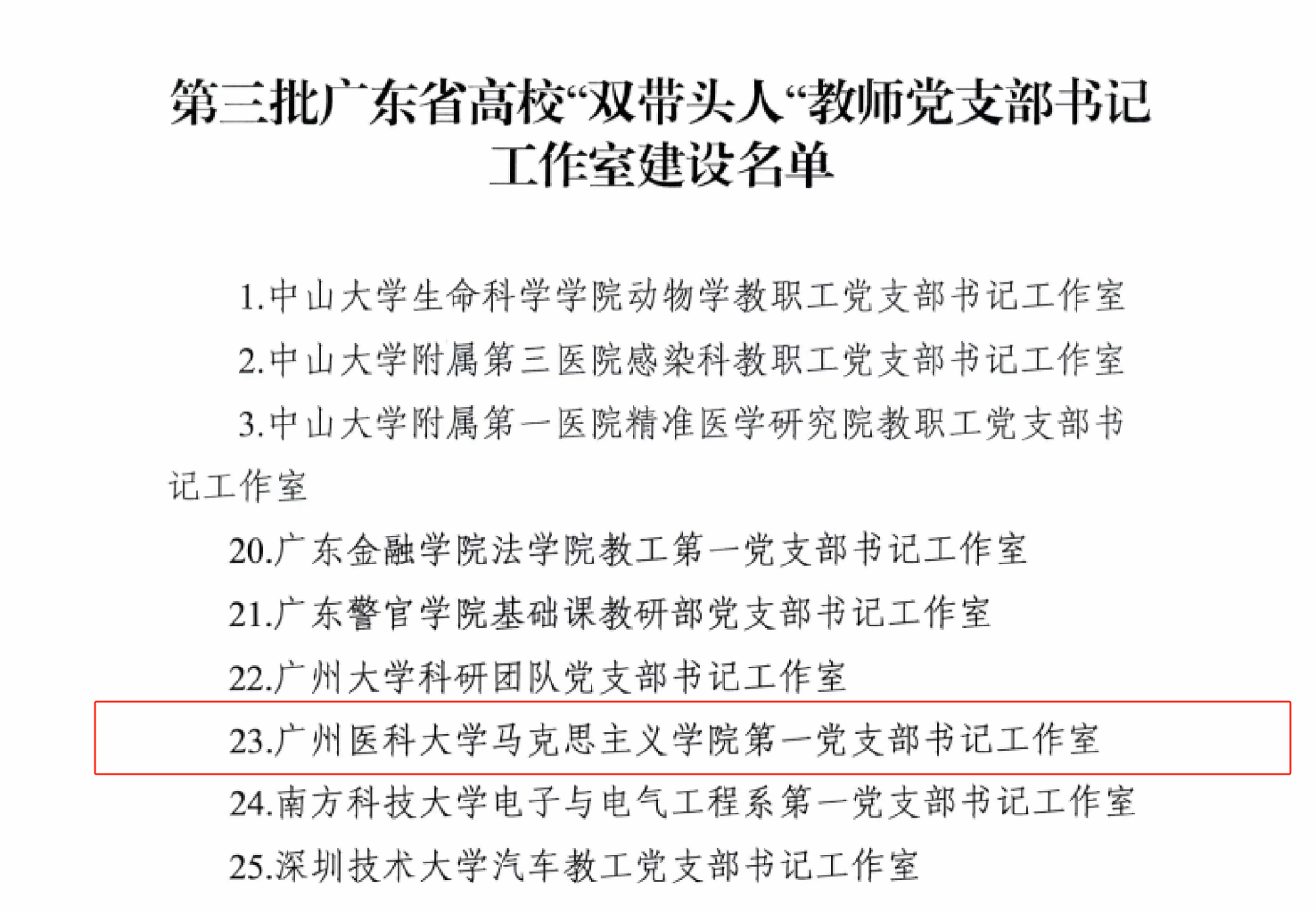 中共广东省委教育工委公布第三批高校“双带头人”教师党支部书记工作室建设名单