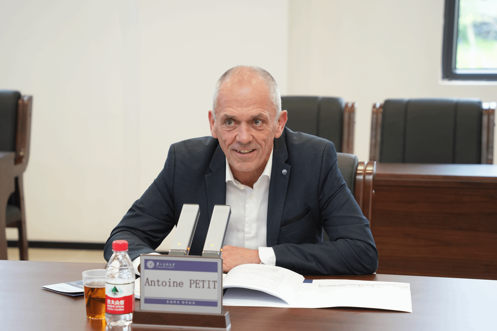 6月26日下午,法国国家科学研究中心(CNRS)主席安多万·贝蒂(Antoine Petit)率团来我校访问交流,我校党委书记唐小平教授,副校长胡丙杰、李建华、付晓东教授会见来宾。我校广州霍夫曼免疫所、研究生院、科研处和对外合作交流处负责人参加会谈。