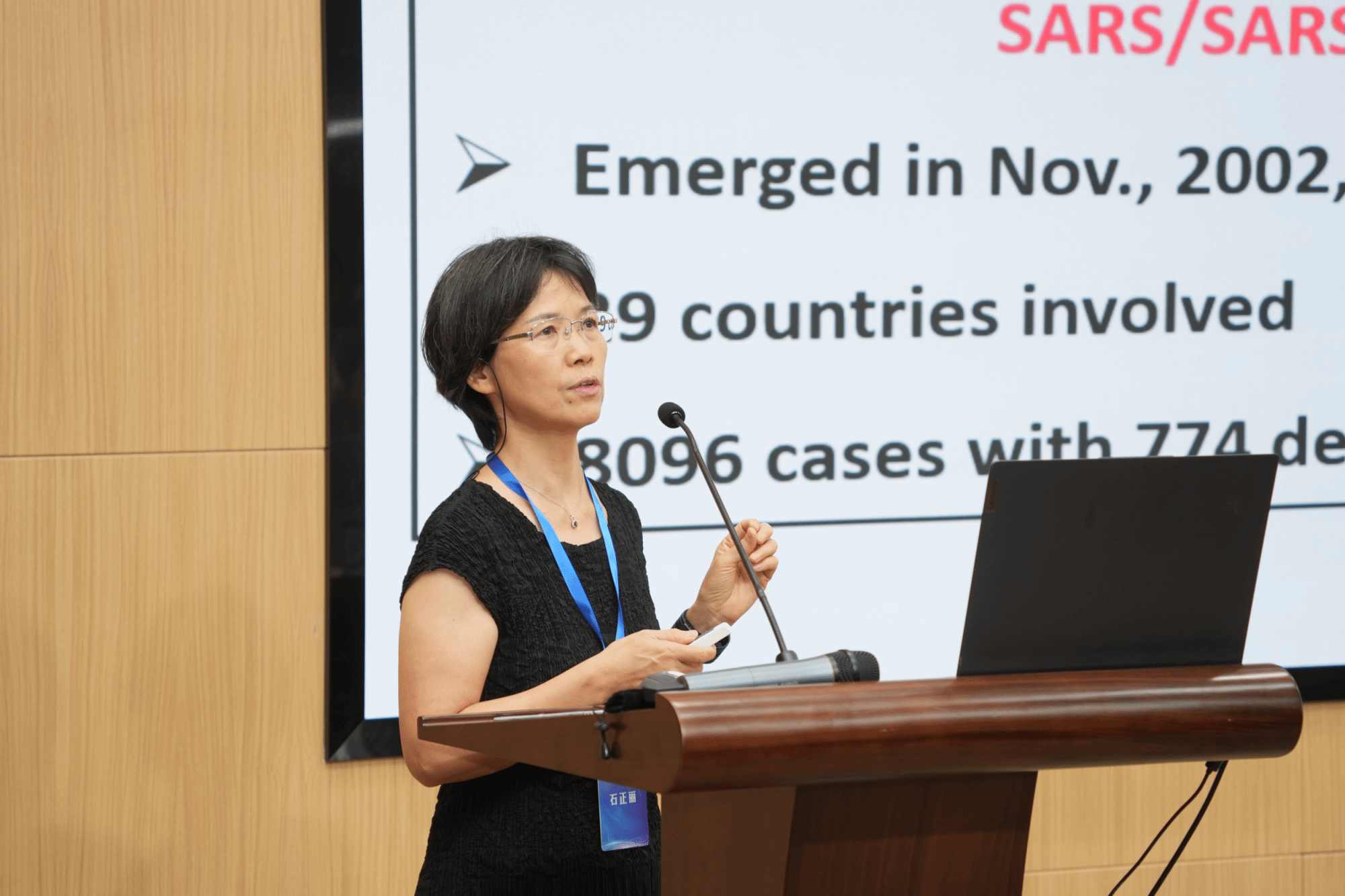 石正丽教授以“SARS相关冠状病毒遗传演化、入侵机制和致病性研究”为题作学术报告