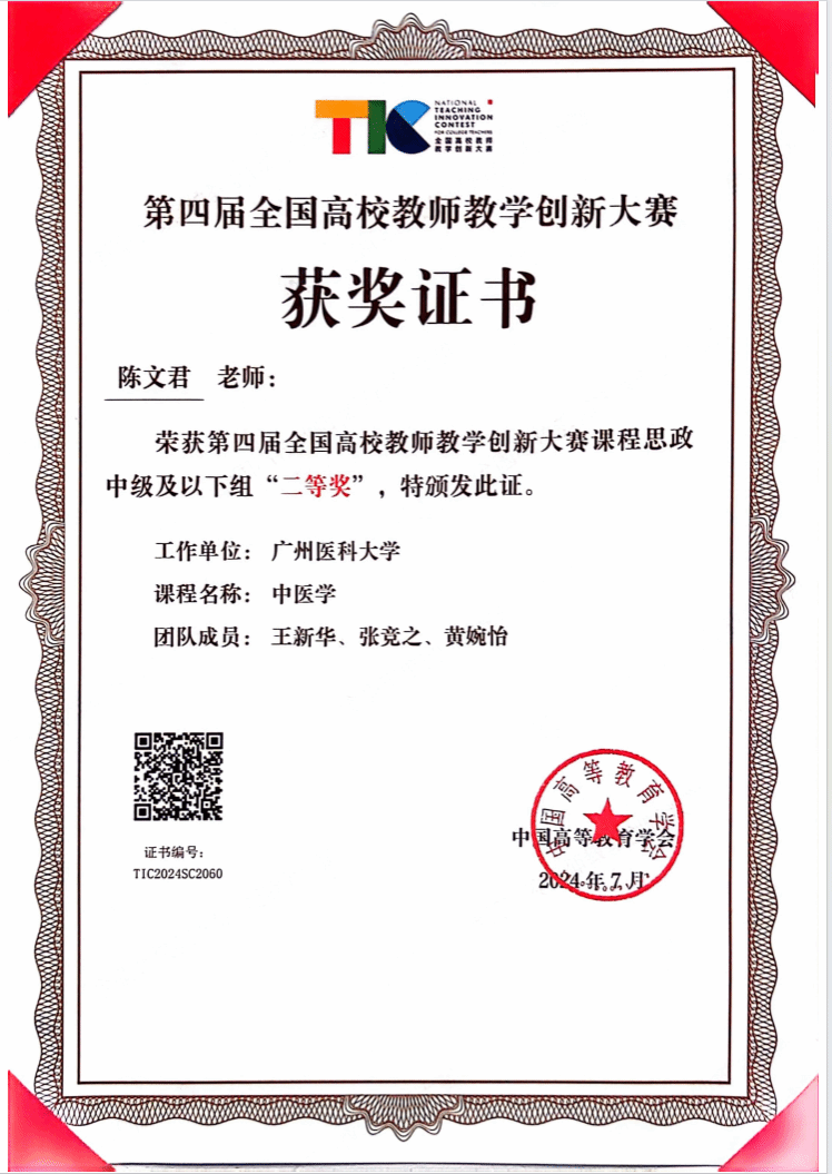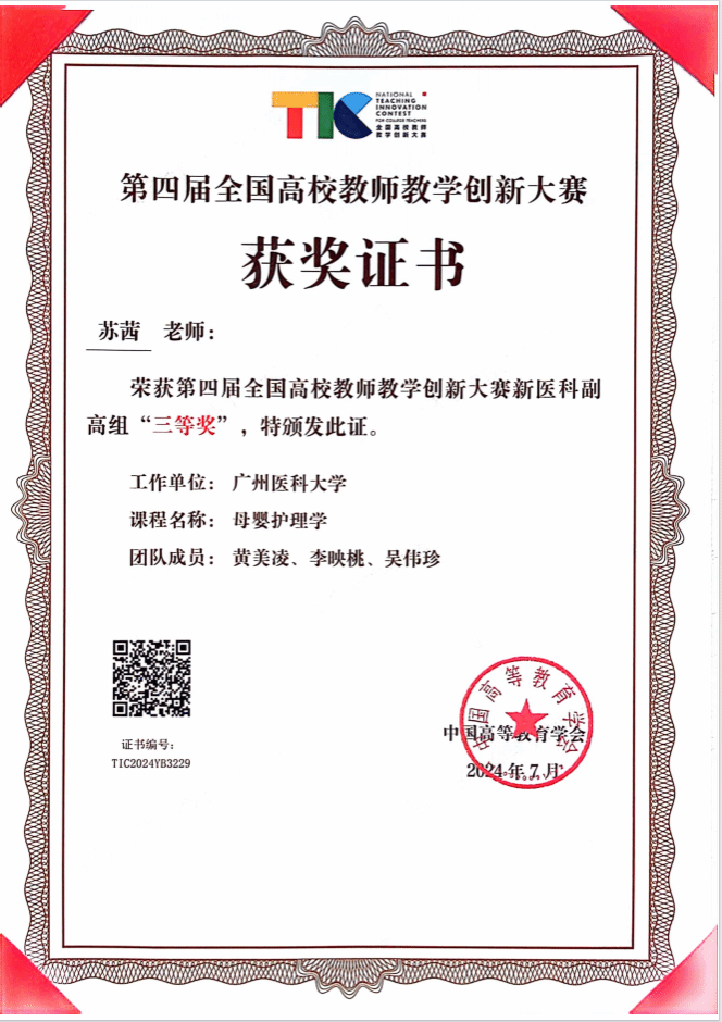 经过激烈角逐,第二临床学院陈文君老师《中医学》课程团队荣获课程思政赛道中级及以下组二等奖,护理学院苏茜副教授《母婴护理学》课程团队荣获新医科赛道副高组三等奖,刷新了我校教师在国家级高水平教学竞赛中的最好成绩。
