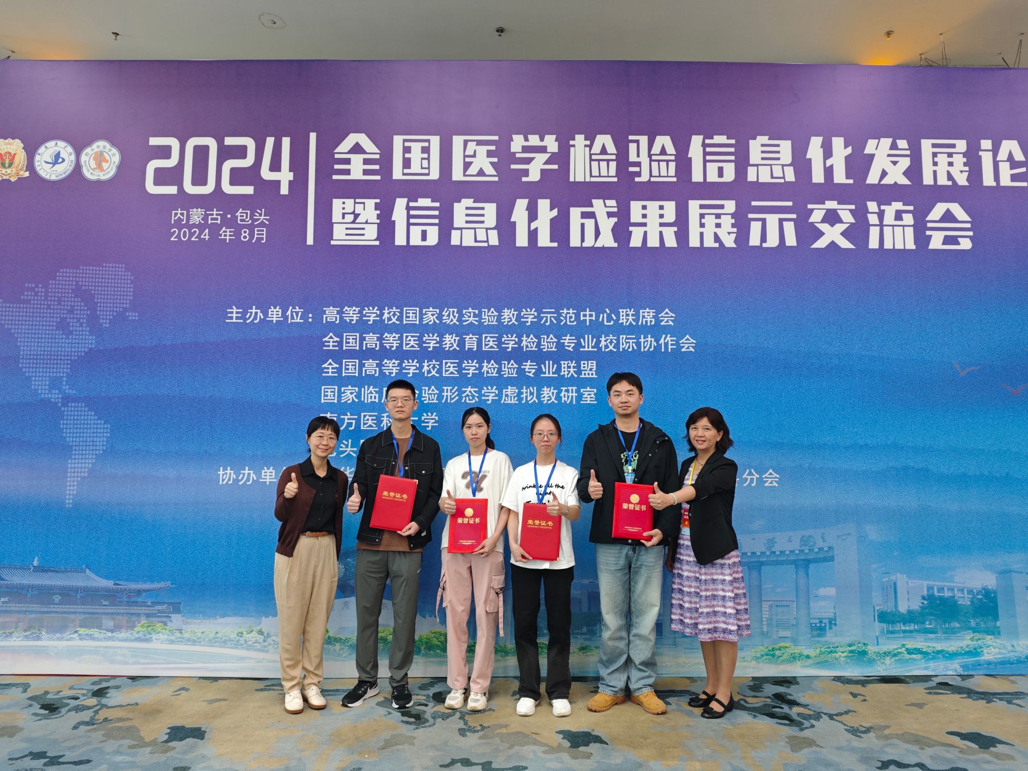 近日,第八届全国医学检验技术专业大学生形态学大赛、第三届虚拟仿真临床实验诊断大赛在内蒙古包头市举行,我校金域检验学院代表队两名学生分获一项特等奖,另有两名学生分获一等奖、二等奖。