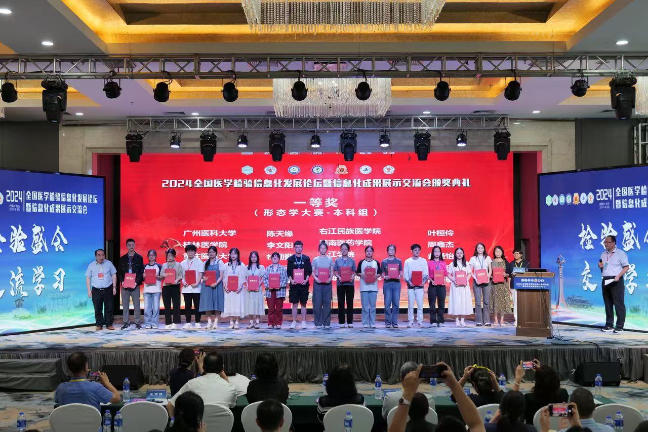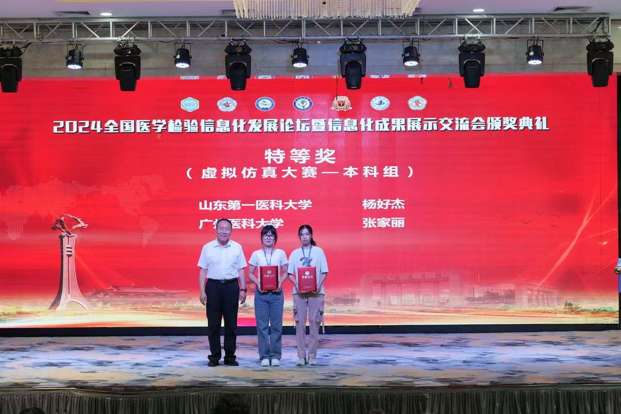 金域检验学院学子与来自全国50余所高等院校的学生同台竞技。在第八届全国医学检验技术专业大学生形态学大赛中,刘静以总分第一的成绩荣获特等奖,陈天缘荣获一等奖;在第三届虚拟仿真临床实验诊断大赛中,张家丽荣获特等奖,林锦鸿荣获二等奖。我校获得大会优秀组织奖。