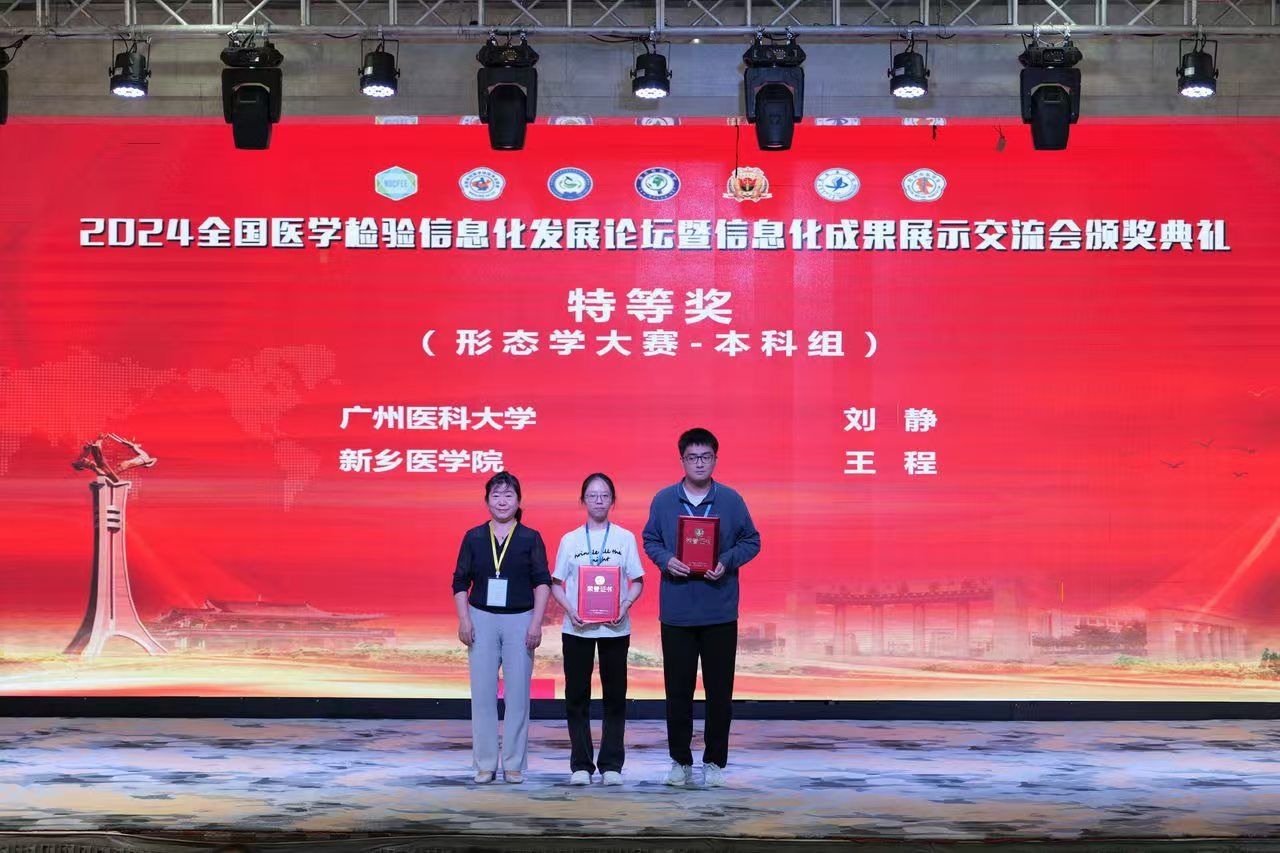 刘静(中)获得第八届全国医学检验技术专业大学生形态学大赛特等奖 (第一指导老师:魏小平)