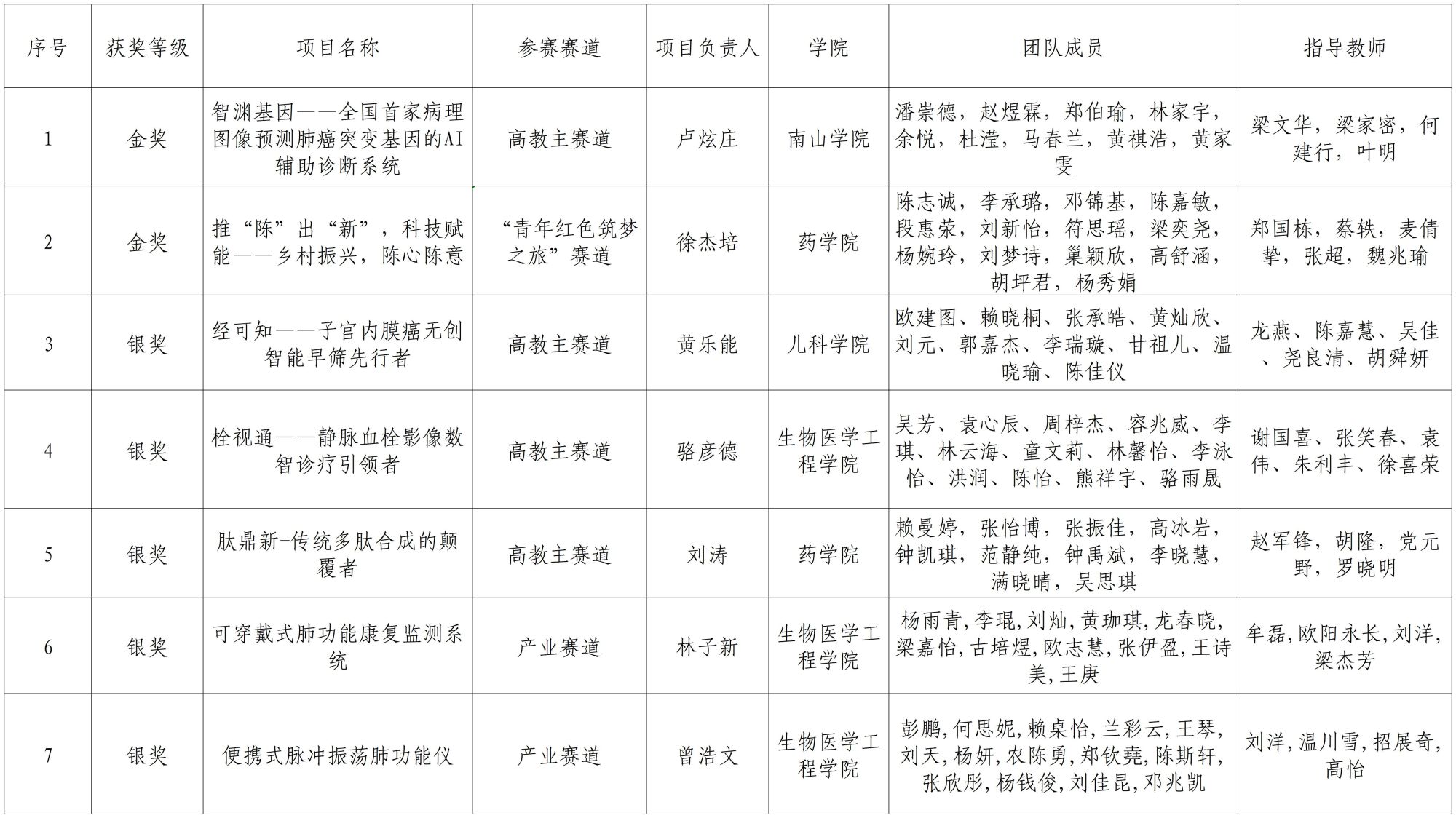 中国国际大学生创新大赛(2024)广东省赛决赛广医参赛项目获奖名单
