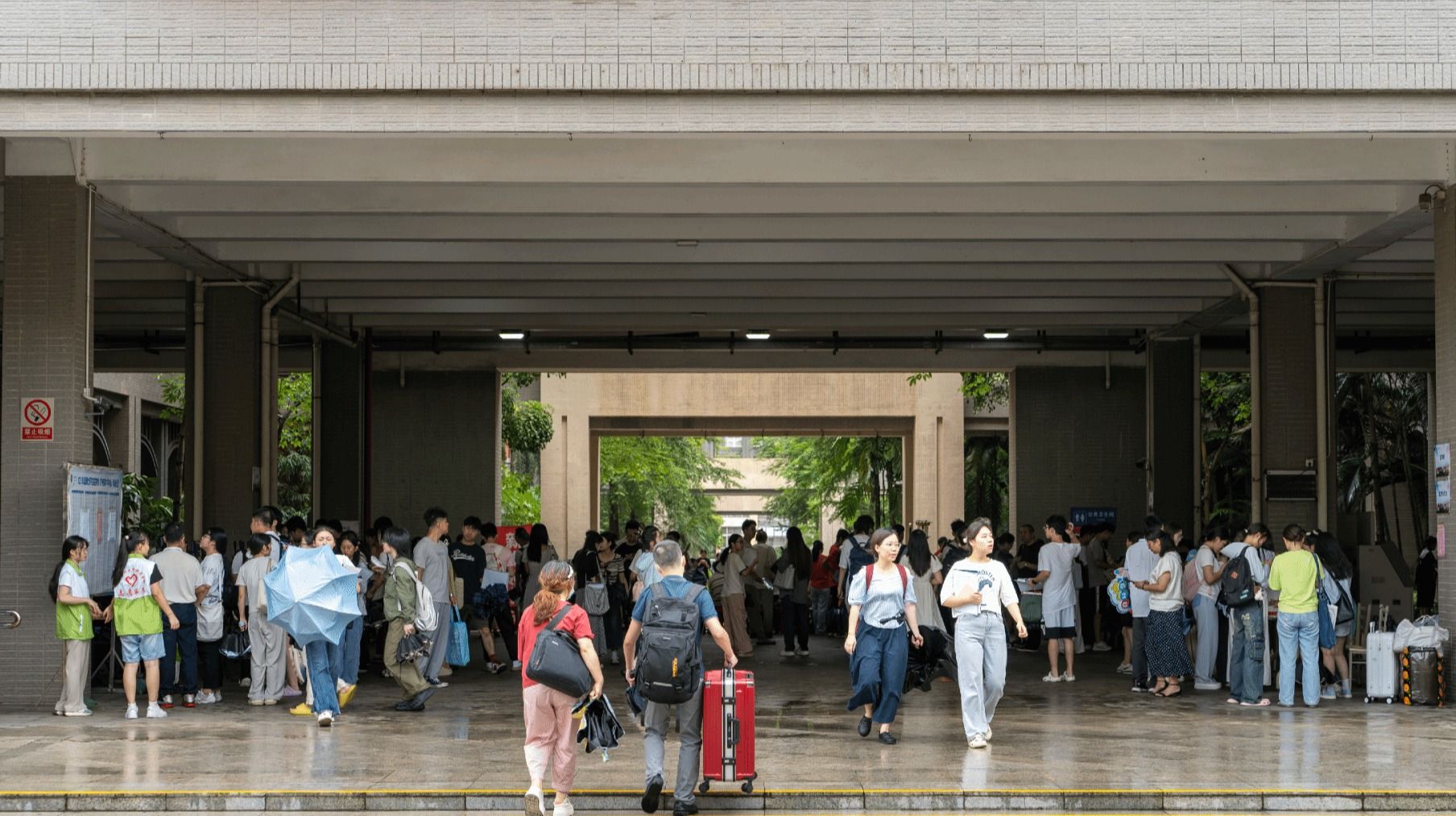 即使遇上阴雨天气,也抵挡不了满满的热情与期待。萌新们带着对未来的憧憬,朝气蓬勃地步入校门。