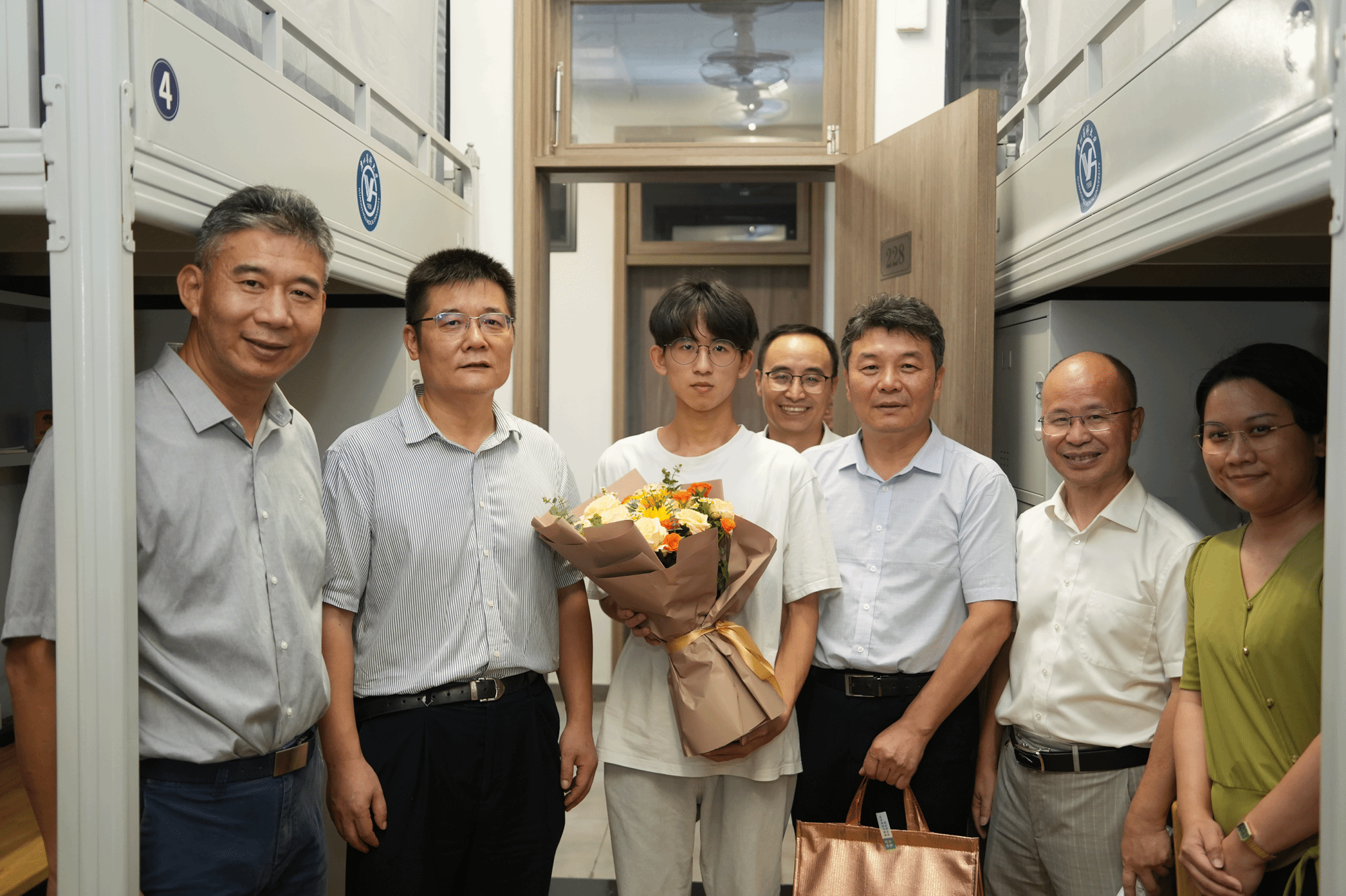 校长赵醒村、副校长周麟以及相关部门负责人、辅导员老师到番禺校区宿舍看望慰问新生,并为今天生日的本科新生送上蛋糕、鲜花与祝福。