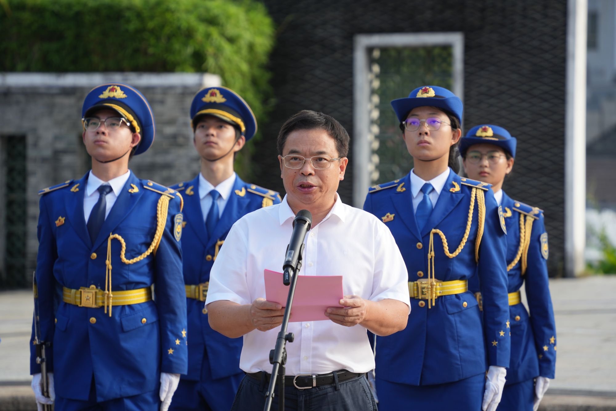 校长赵醒村主持升旗仪式。他希望全校师生员工以习近平新时代中国特色社会主义思想为指导,深入学习贯彻党的二十大和二十届三中全会精神,振奋披坚执锐的勇气、昂扬先行一步的锐气,奋力开创学校“双一流”建设新局面,为中国式现代化建设作出广医更大的贡献。