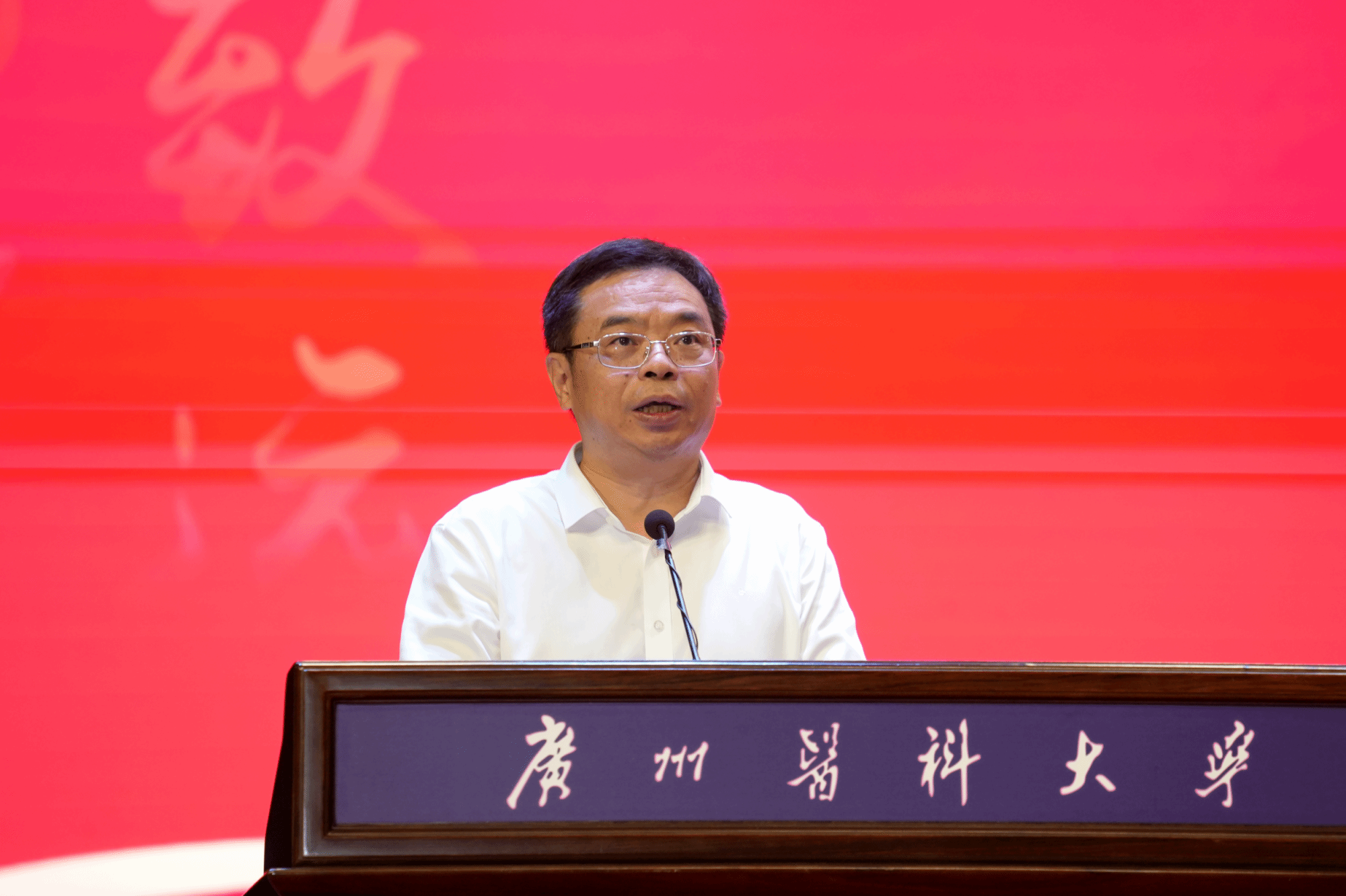 校长赵醒村代表学校向所有努力拼搏、梦圆广医的新同学表示衷心的祝贺和热烈的欢迎,向无私奉献、默默耕耘在各个工作岗位上的老师们致以诚挚的问候和节日的祝福。