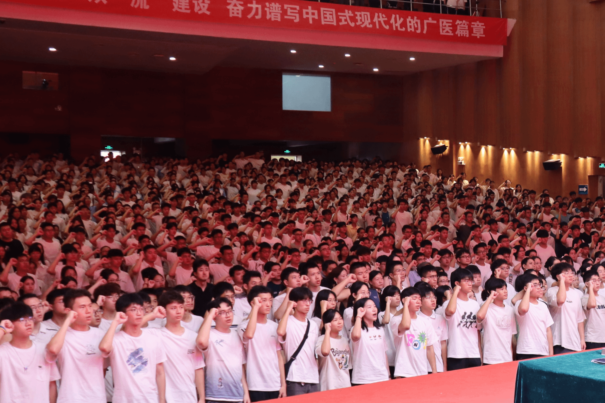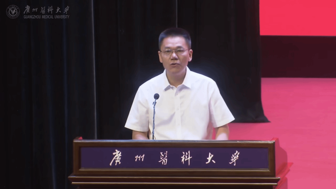 他指出,此时此刻,新生们正处于人生最美好的大学时代,正在经历广医发展的黄金时期,希望大家坚定方向、脚踏实地,勇于创新、全面发展,与时间赛跑、与时代同行,努力成长为民族复兴伟大征程上的奋进力量。