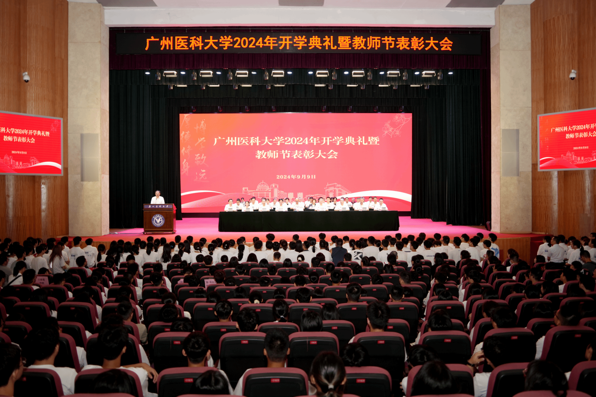 2024年开学典礼暨教师节表彰大会在番禺校区礼堂设置主会场,在番禺校区图书馆一楼学术报告厅、学术交流中心和各附属医院设置分会场。
