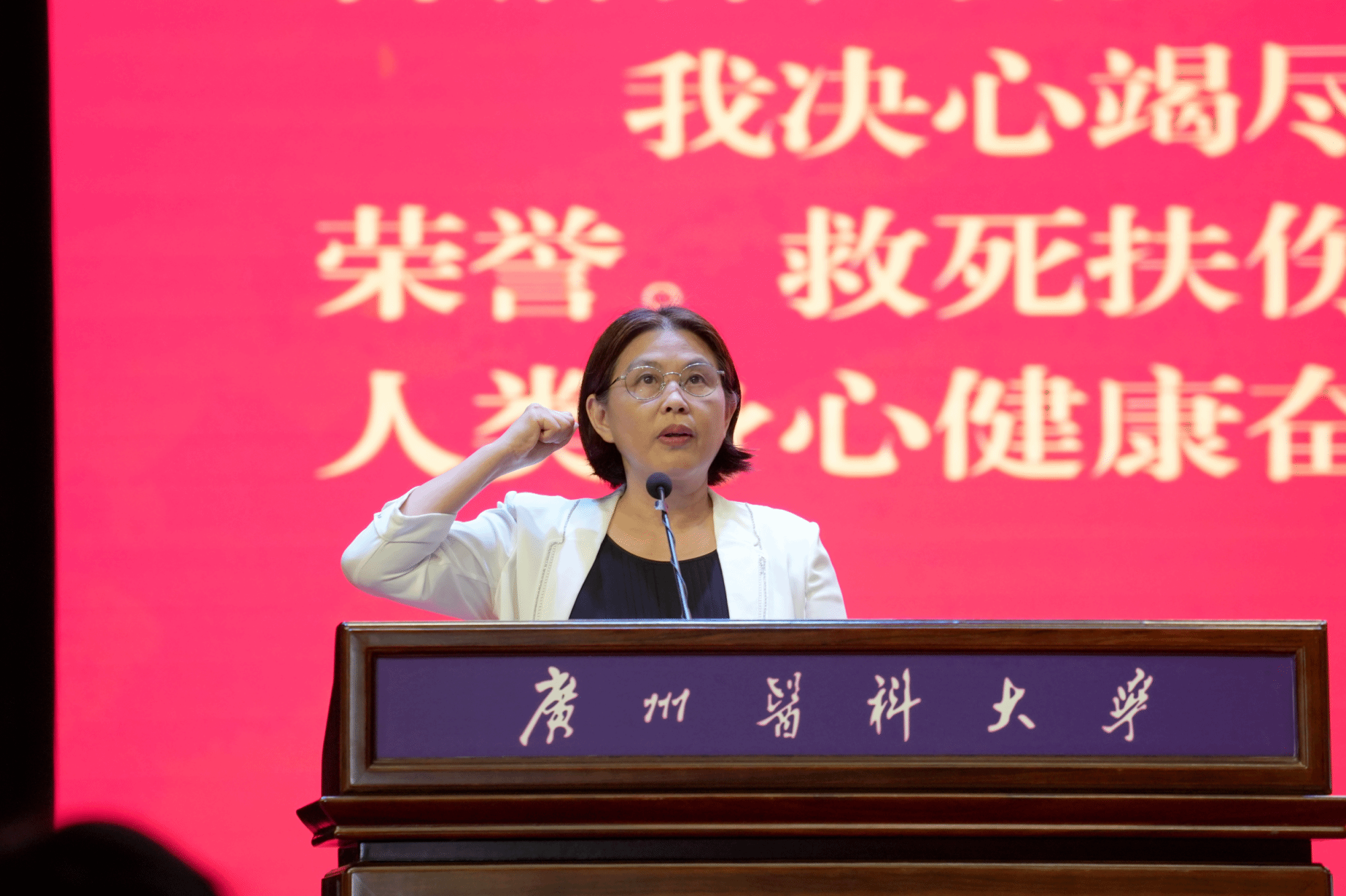 会上,全体新生宣读《医学生誓言》。